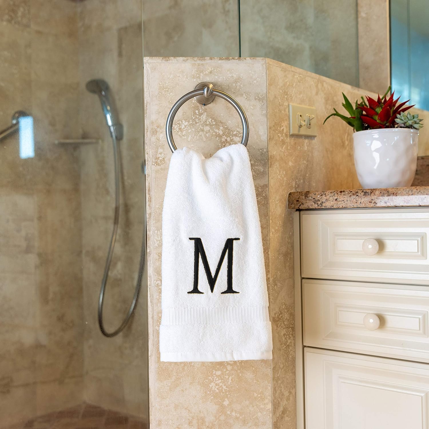 - Premium Quality - High quality durable soft rich monogram letter hand towels in white cotton with black stitching