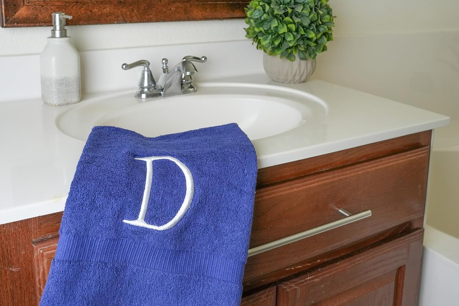 - Premium Quality - High quality durable soft rich monogram letter hand towels in navy cotton with white stitching