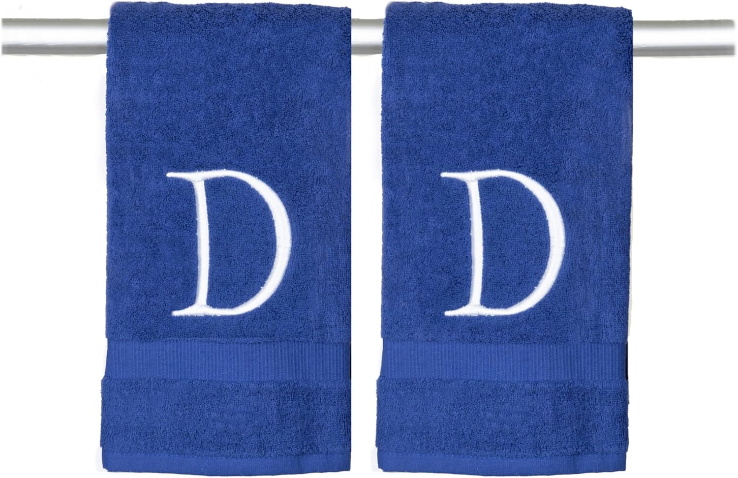 Navy Luxury Hand Towel for Bathroom - Monogrammed Initial Hotel Quality Decorative Embroidered Towel for Powder Room, Spa - GOTS Organic Certified - Set of 2 White Letter D