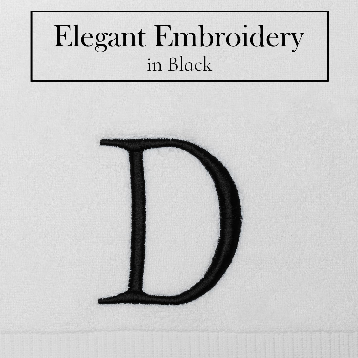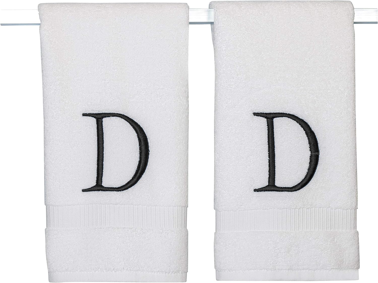 Black Luxury Hand Towel for Bathroom - Monogrammed Initial Hotel Quality Decorative Embroidered Towel for Powder Room, Spa - GOTS Organic Certified - Set of 2 Letter D