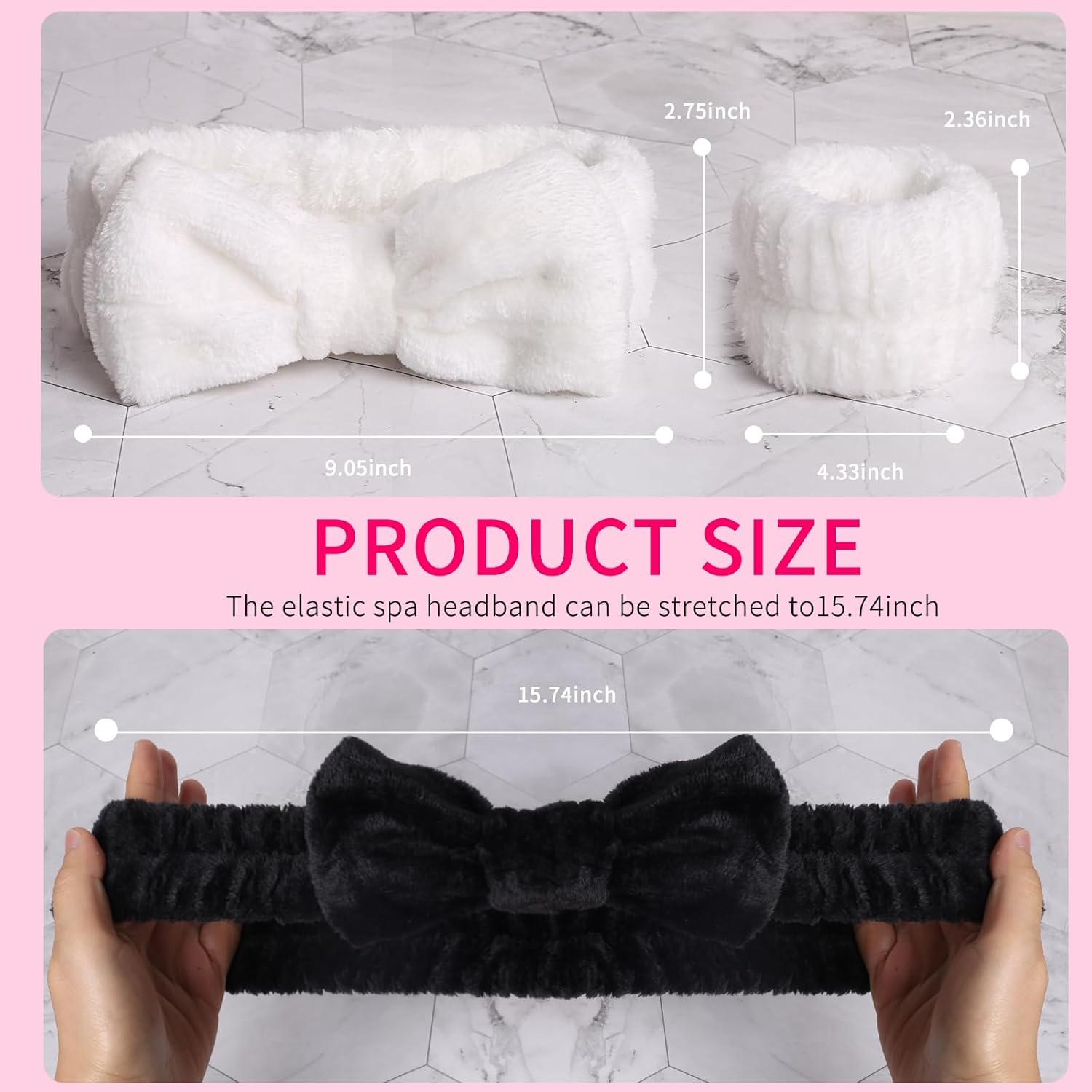 - 6Pcs Spa Headband and Wristband Set: WSYUB nice combination makeup headband set contains 2pcs microfiber bow hair band and 4pcs soft wrist bands all in black and white colors. These practical cute face wash tools effectively hold your hair back away from your forehead and reduce and prevent liquid from spreading and spilling down to your arms when you wash face or do hair care.