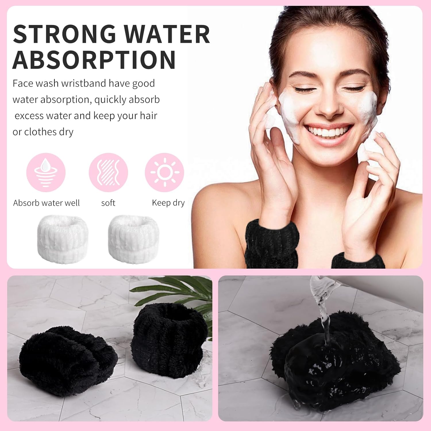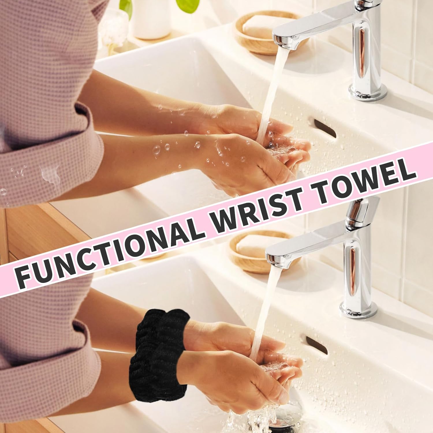 - Face Wash Game Changer! These woman elastic headbands and wrist towels is a game changer. No more annoying drips of water down your arms as you washing your face! They're perfect for keeping your bathroom clean and tidy while make your task become efficient. They are super soft, super cute and fit well, the size suit for adult and kid.