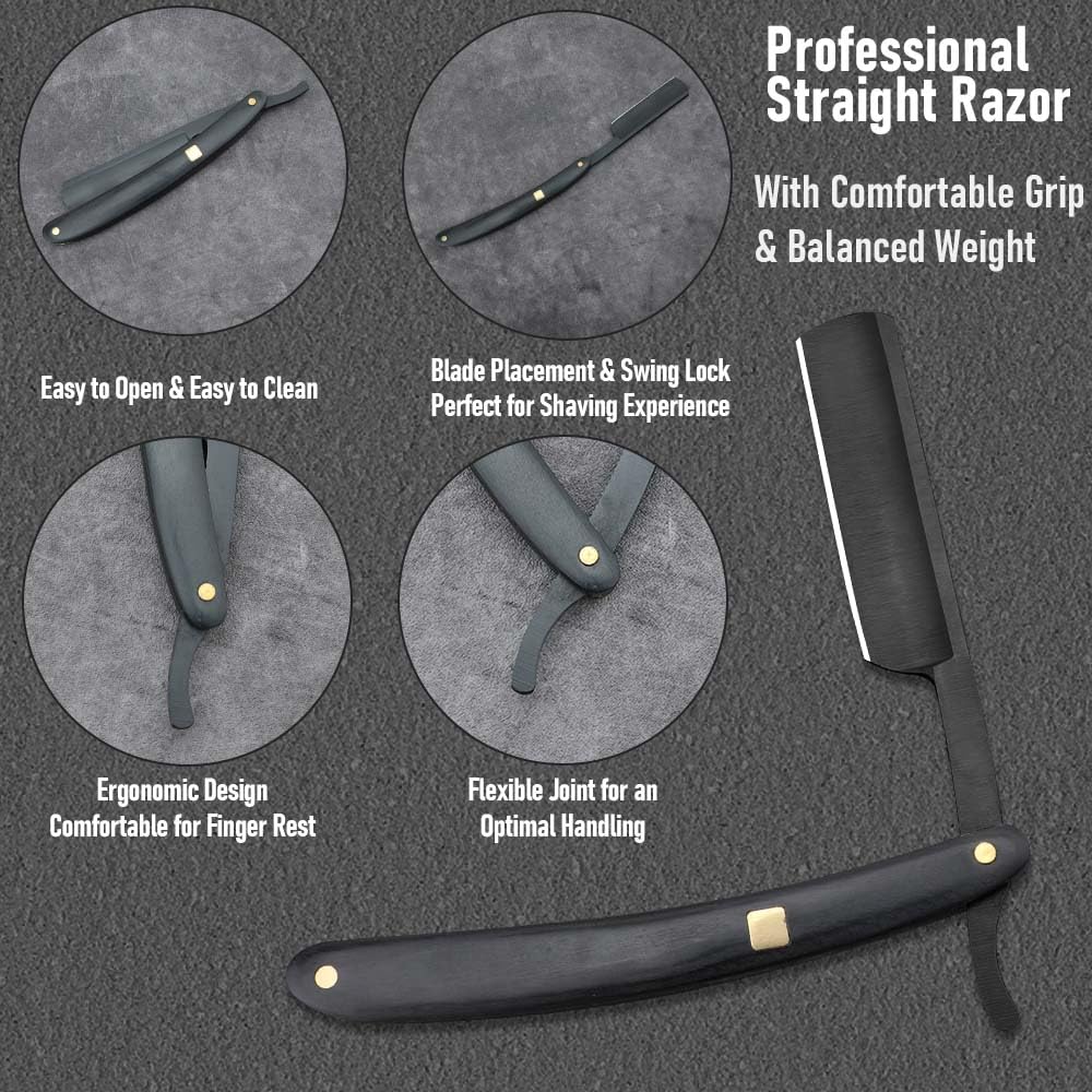 - 【Vintage Straight Razor Set 】You will get a straight-edged razor and a leather canvas belt,which can be stored easily and safely.This Foldable razor with multiple functions,it can shave,but also as a eyebrow trimming or body hair removal shave.