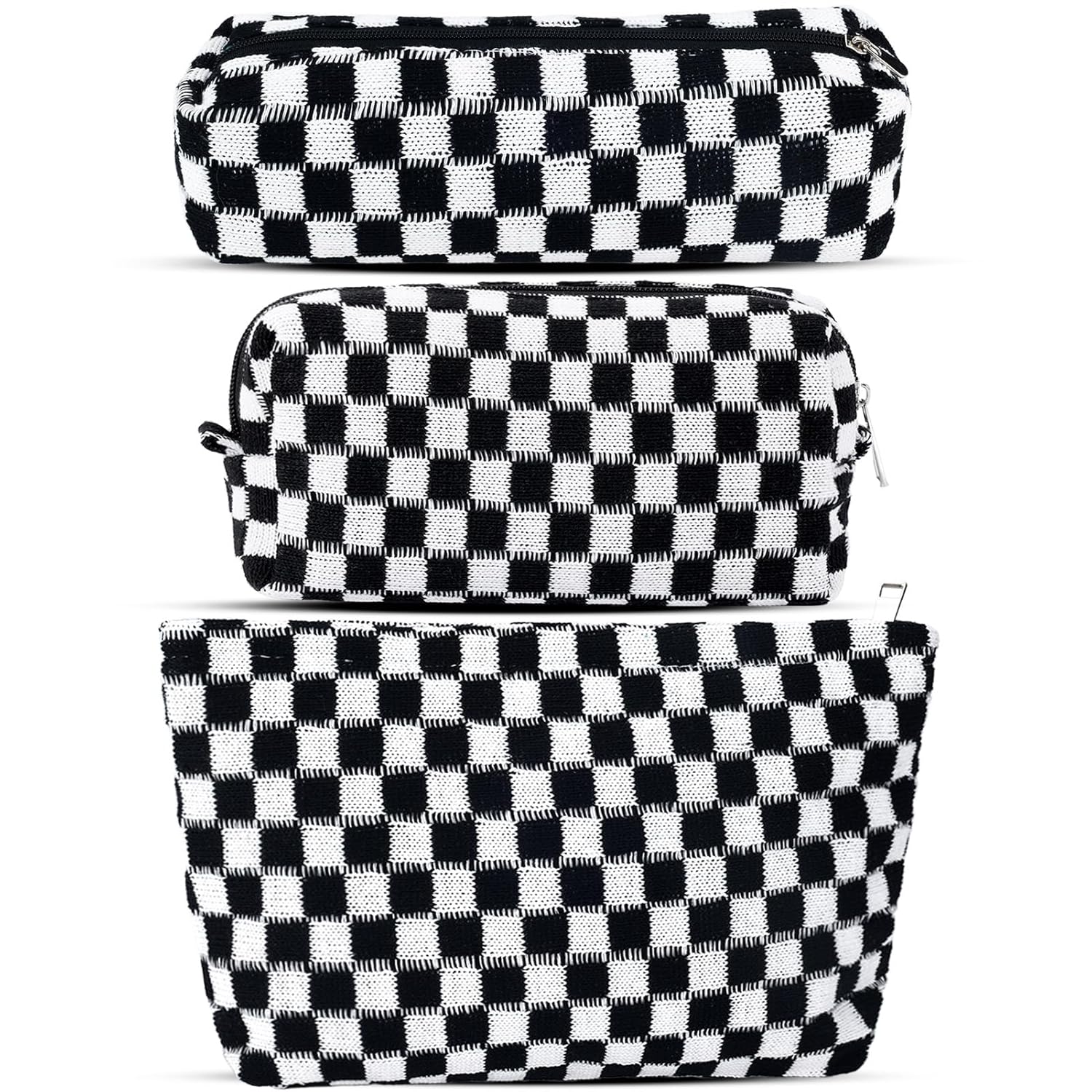- LARGE CAPACITY AND PREMIUM MATERIAL: The cute makeup bag measure 10.6×7 inches, 7×4 inches and 7.7×2.5 easy to carry. The checkered makeup bag is made of soft knitted fabric, easy to clean. The smaller ones can be used as pencil case or pencil pouch. This makeup travel bag can also hold small items such as makeup, skincare products, lipstick, eye shadow, eyebrow brush, etc. Makeup storage bag for women toiletries