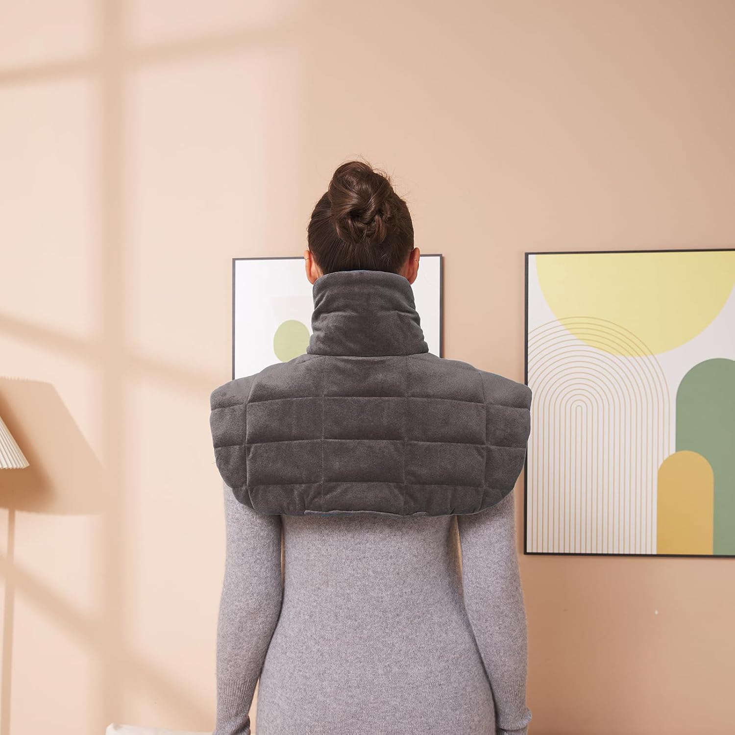 Ambershine 19''x24'' Weighted Neck & Shoulder Heating Pad, 2.5lbs with 12 Temperature Settings& 4 Auto-Off Timers, Pain Relief for Neck/Shoulder/Back, Christmas Gifts for Women Men Mom Dad (Gray)