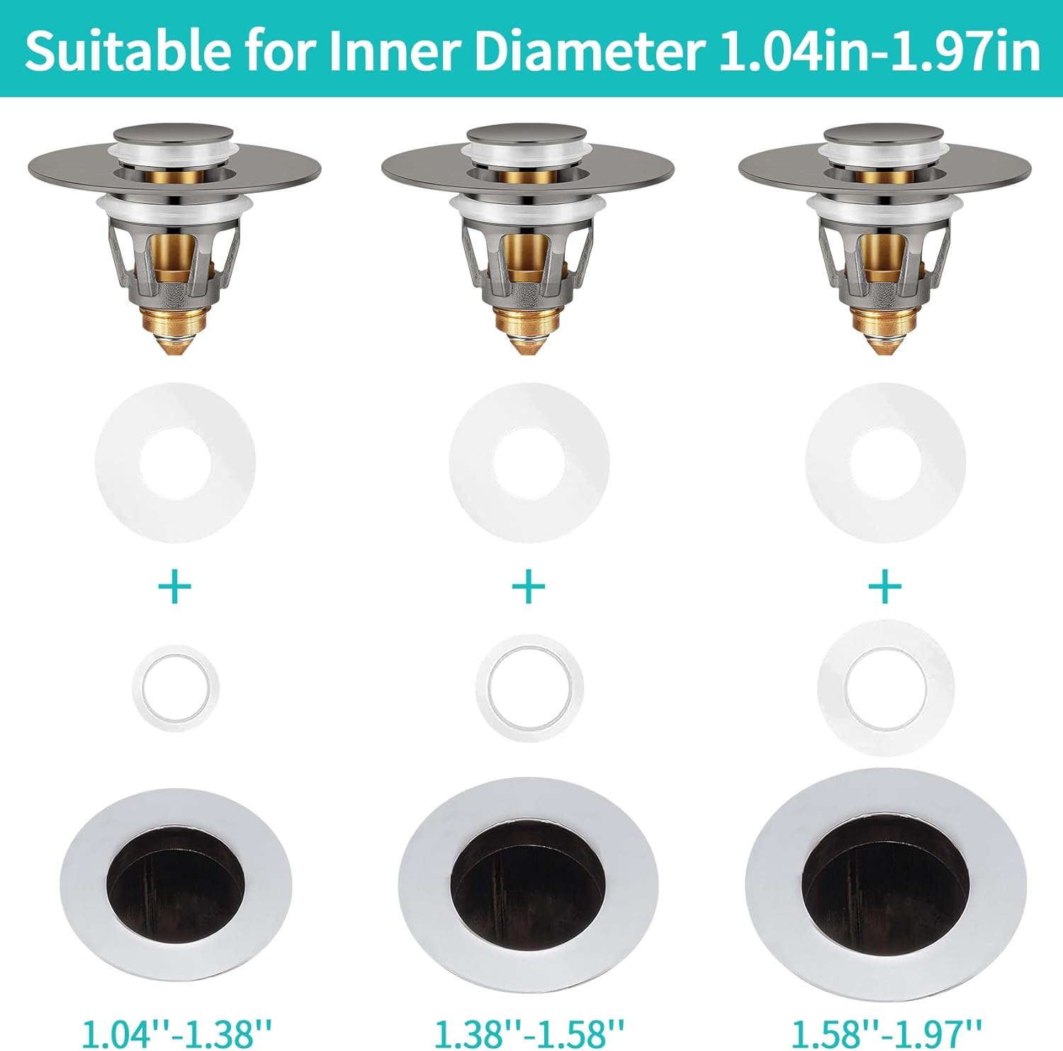 - [ Easy to Install ] No tools are needed, it can be installed easily with bare hands. You just take out the old bounce core and install a new bounce core. Anyone can install the pop-up drain because of its simple structure. If you want to use it for a larger sink hole diameter, you can use the rubber ring we included to increase the inner diameter of the sink plug.