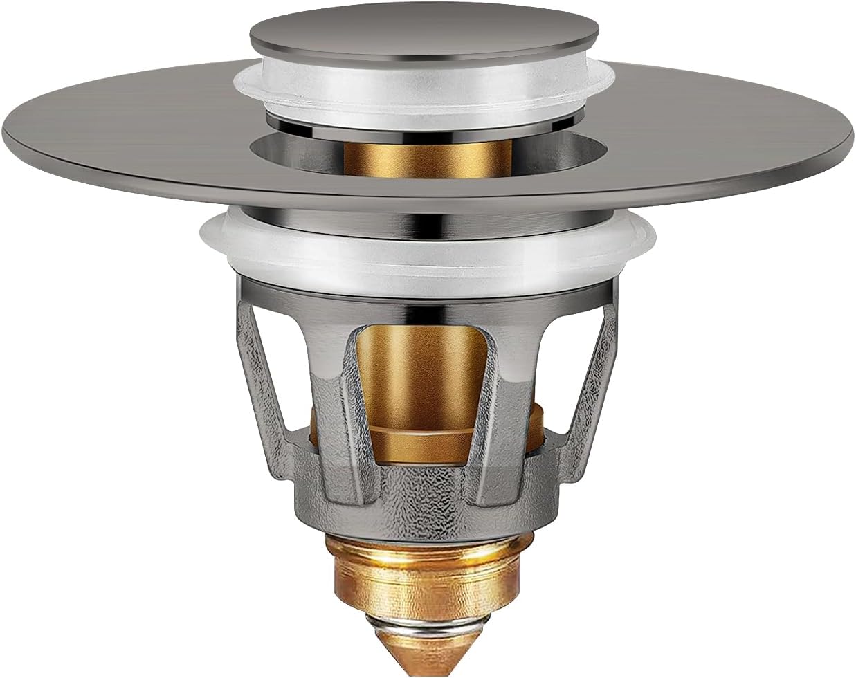 Universal Bathroom Sink Stopper with Hair Catcher, for 1.04-1.97 Inch Drain Hole, Spring Core Bathtub Drain Cover, Pop Up Sink Plug Basin Drain Strainer, Gray