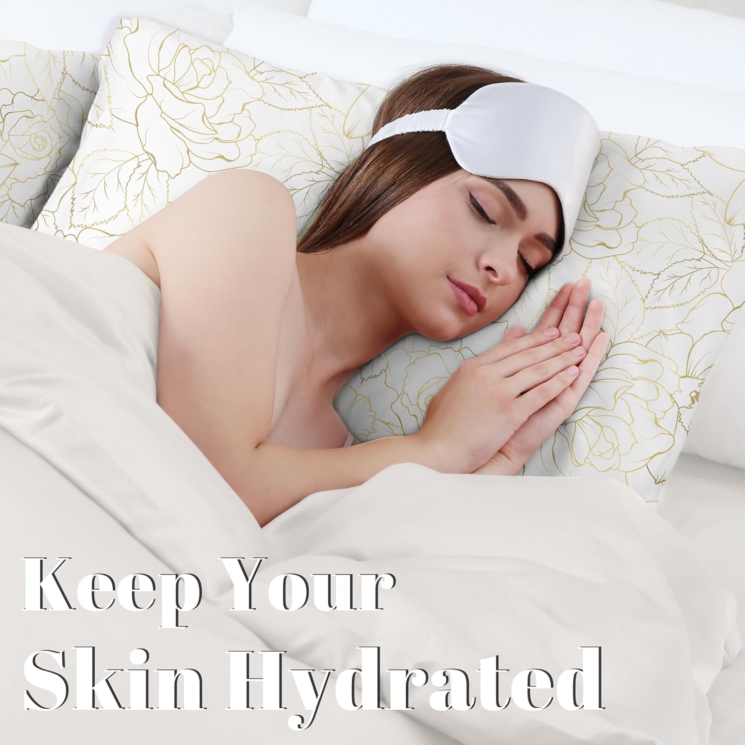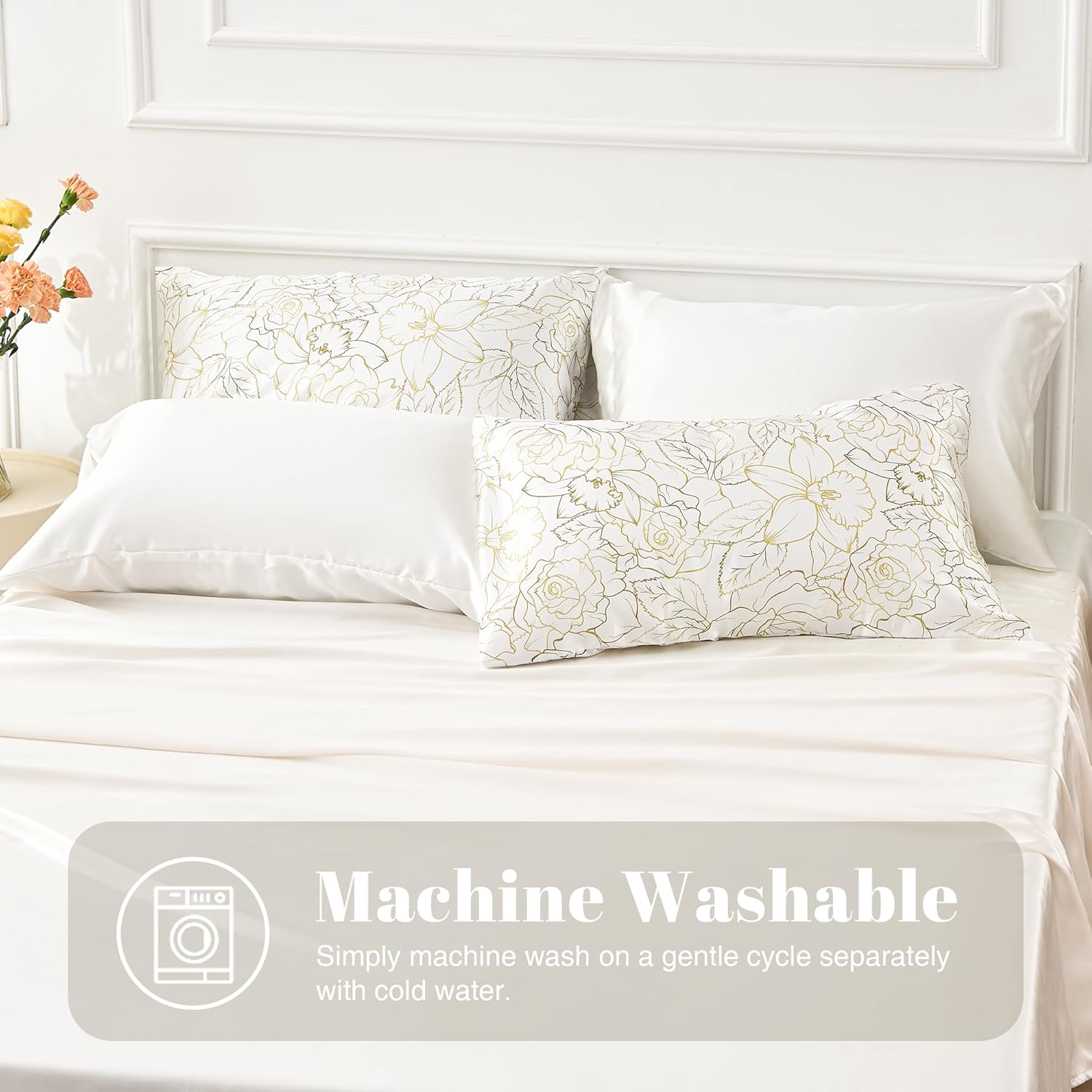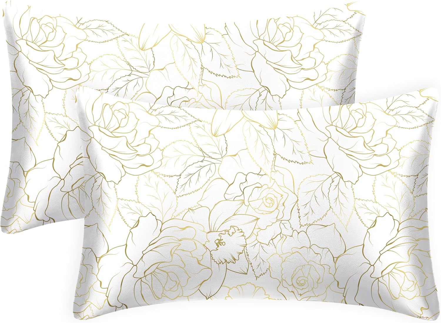 EXQ Home Satin Pillowcase for Hair and Skin Queen - Printed Rose on White Silk Pillowcase 2 Pack 20x30 inches - Satin Pillow Cases Set of 2 with Envelope Closure, Gifts for Women Men