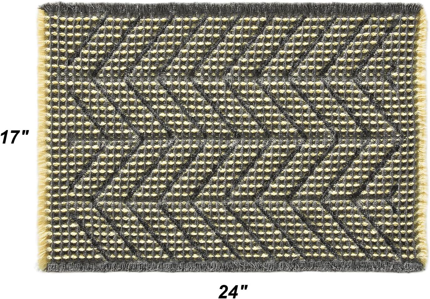 Bath Mats for Bathroom Non Slip,Waffle Luxury Bath Mat,Machine Washable Bath Mat for Shower,Ultra Soft Bathmat,Bluish Grey & Yellow,17"*24"