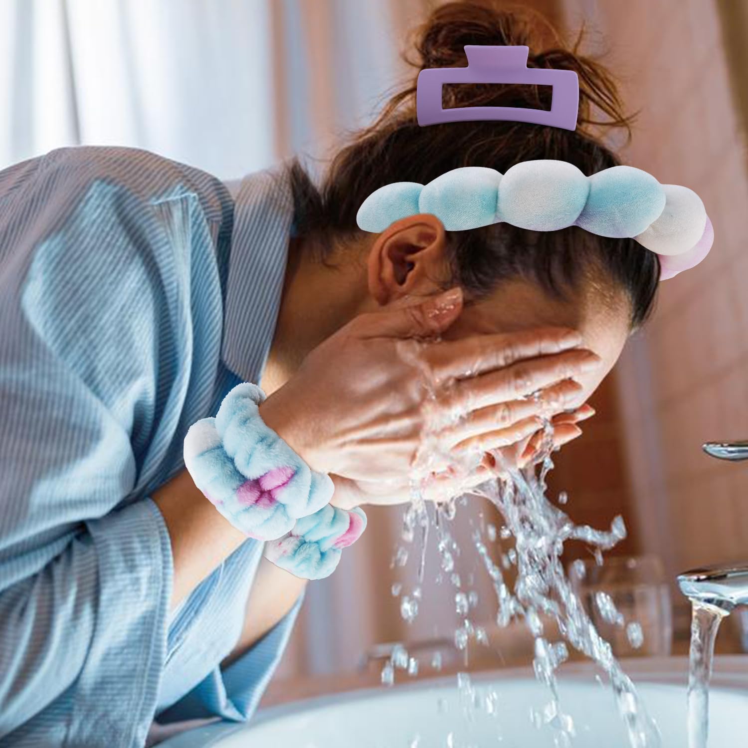 - Water Absorption & Stretchy - Wrist bands can prevent water from spreading to your arms and keep your hair dry. The face wash headband has a great elasticity, suitable for most people's head and wrist circumferences.