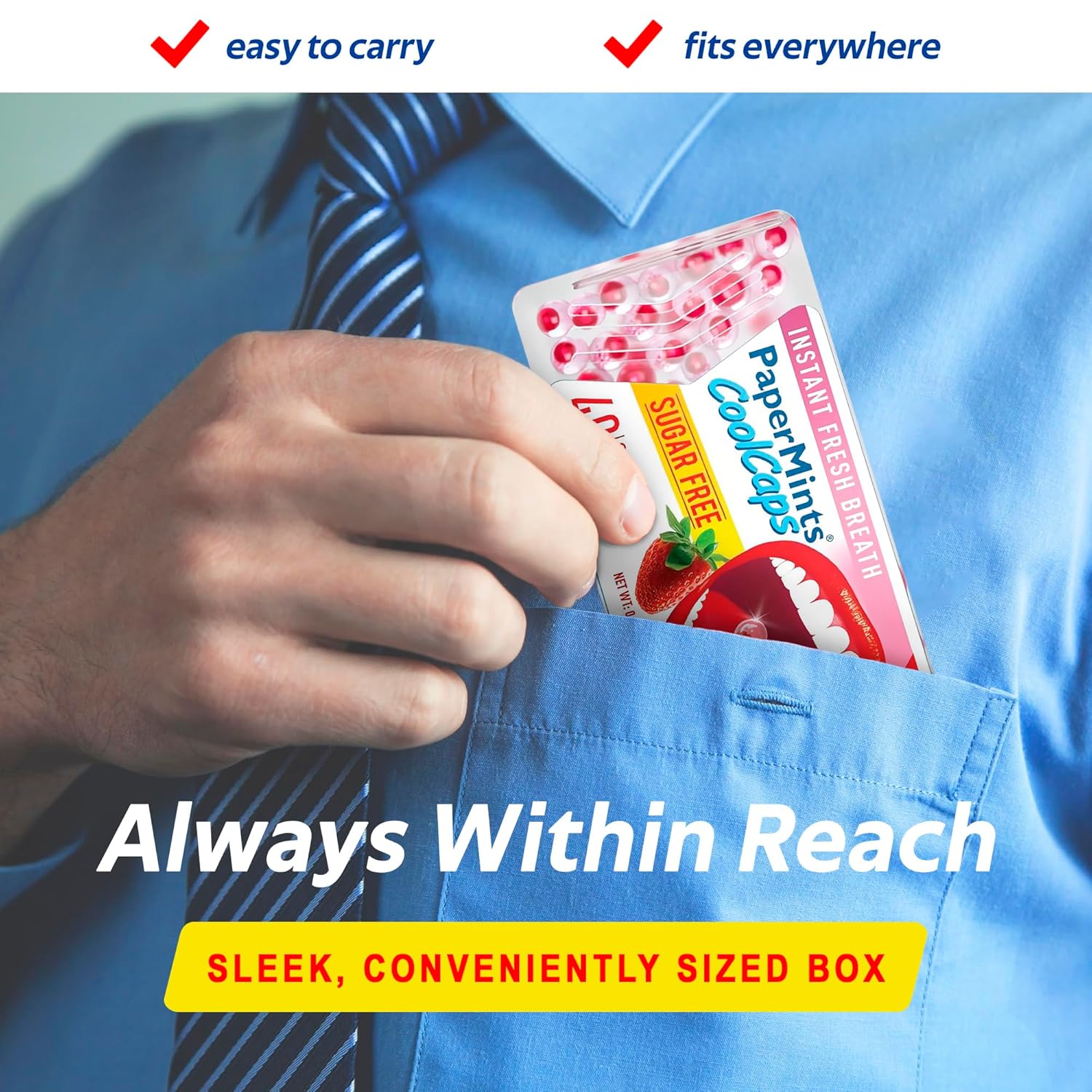 - INSTANT FRESHNESS: Papermints CoolCaps provide an instant burst of refreshing strawberry flavor, banishing bad breath on the spot. Never worry about your breath again!