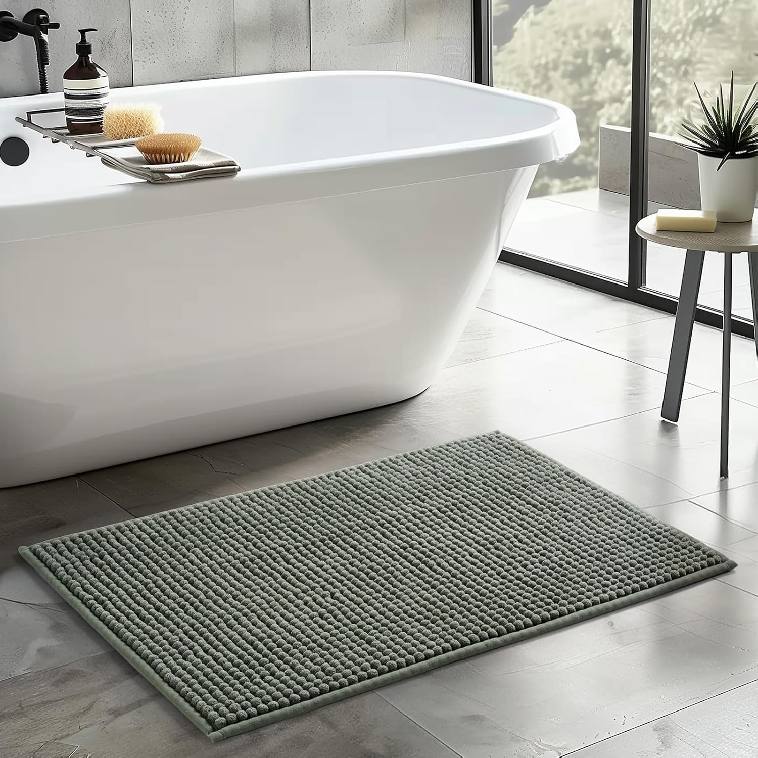 FRESHMINT Thick Chunky Chenille Bathroom Rugs 24"x36", Non Slip Bath Mat, Large Soft Bathroom Decor, Cute Shower Mat Water Absorbent, Washable, Sage Green