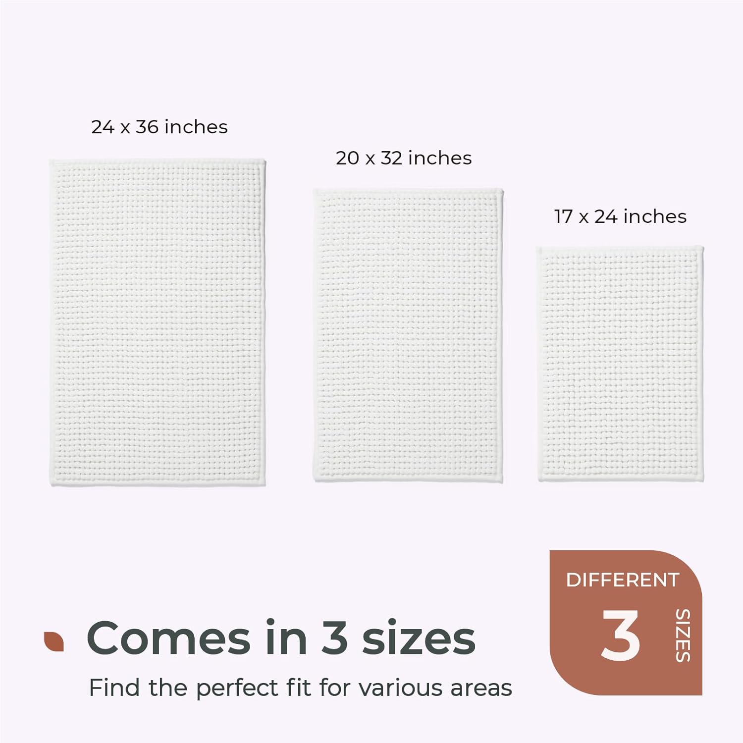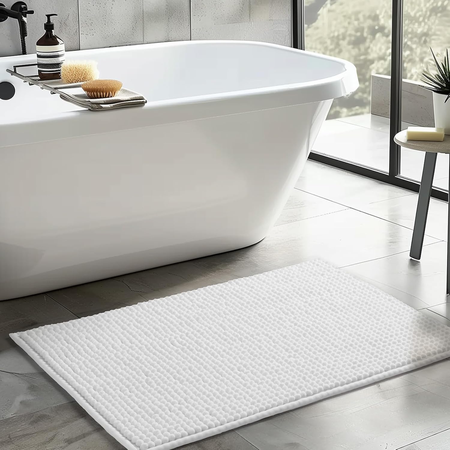 FRESHMINT Thick Chunky Chenille Bathroom Rug, 24"x36", Non Slip Bath Mat, Soft Bathroom Decor, Cute Shower Mat, Water Absorbent, Washable, Bright White