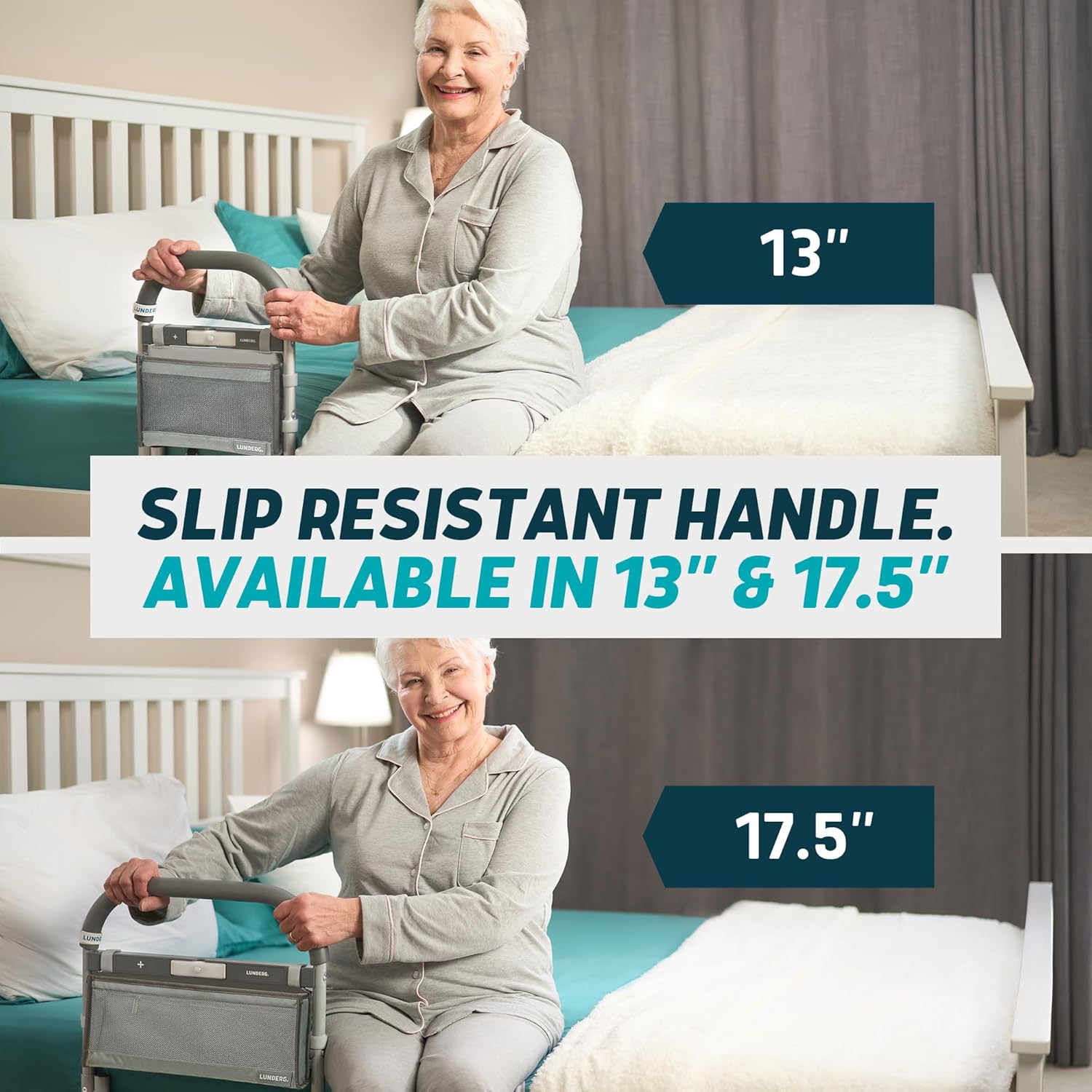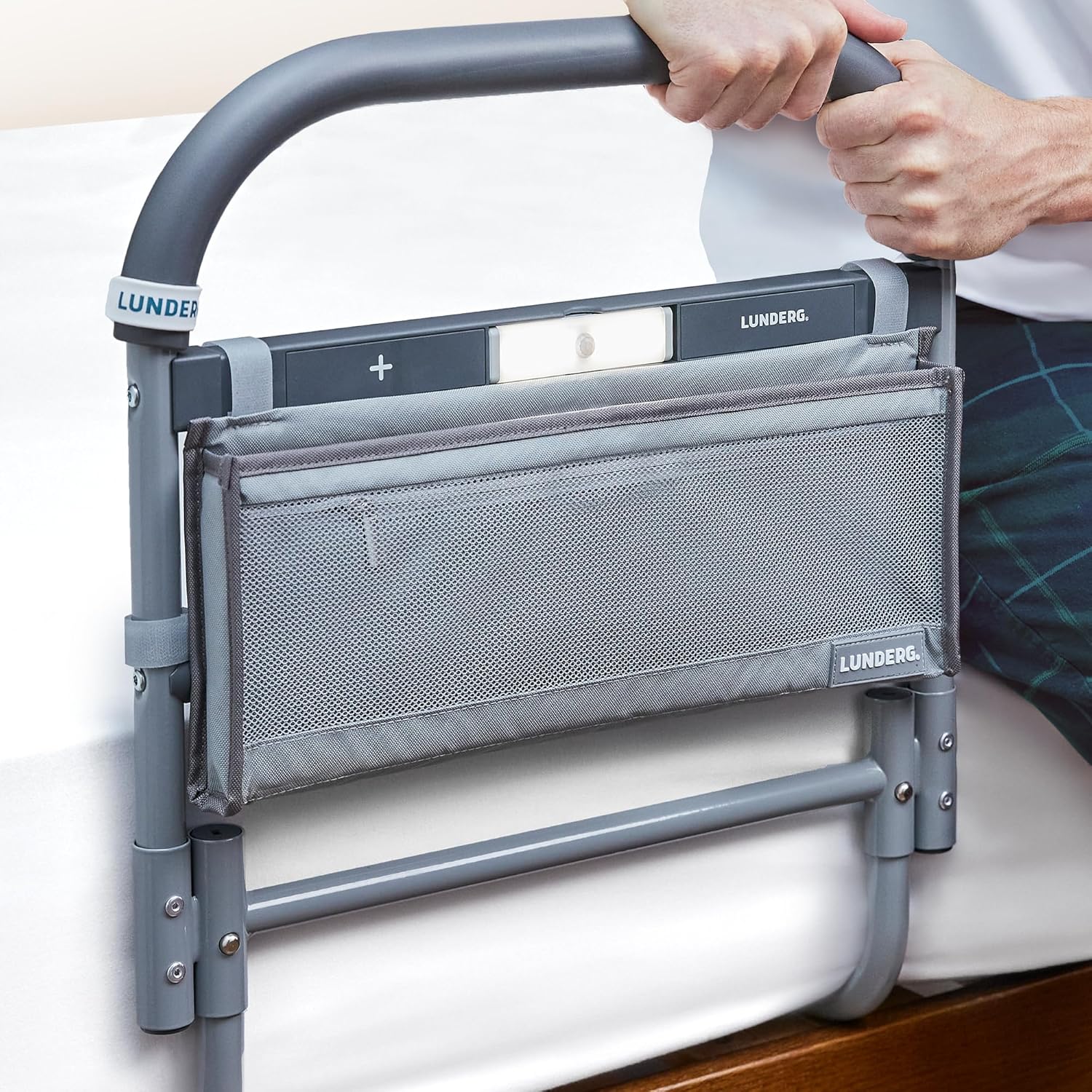 Lunderg Large Bed Assist Rail for Seniors with Motion-Activated Light & Storage Pocket - Easy to Install Bed Rails for Elderly Adults Safety & Post-Surgery - Helps Reduce Falls & Support Independence