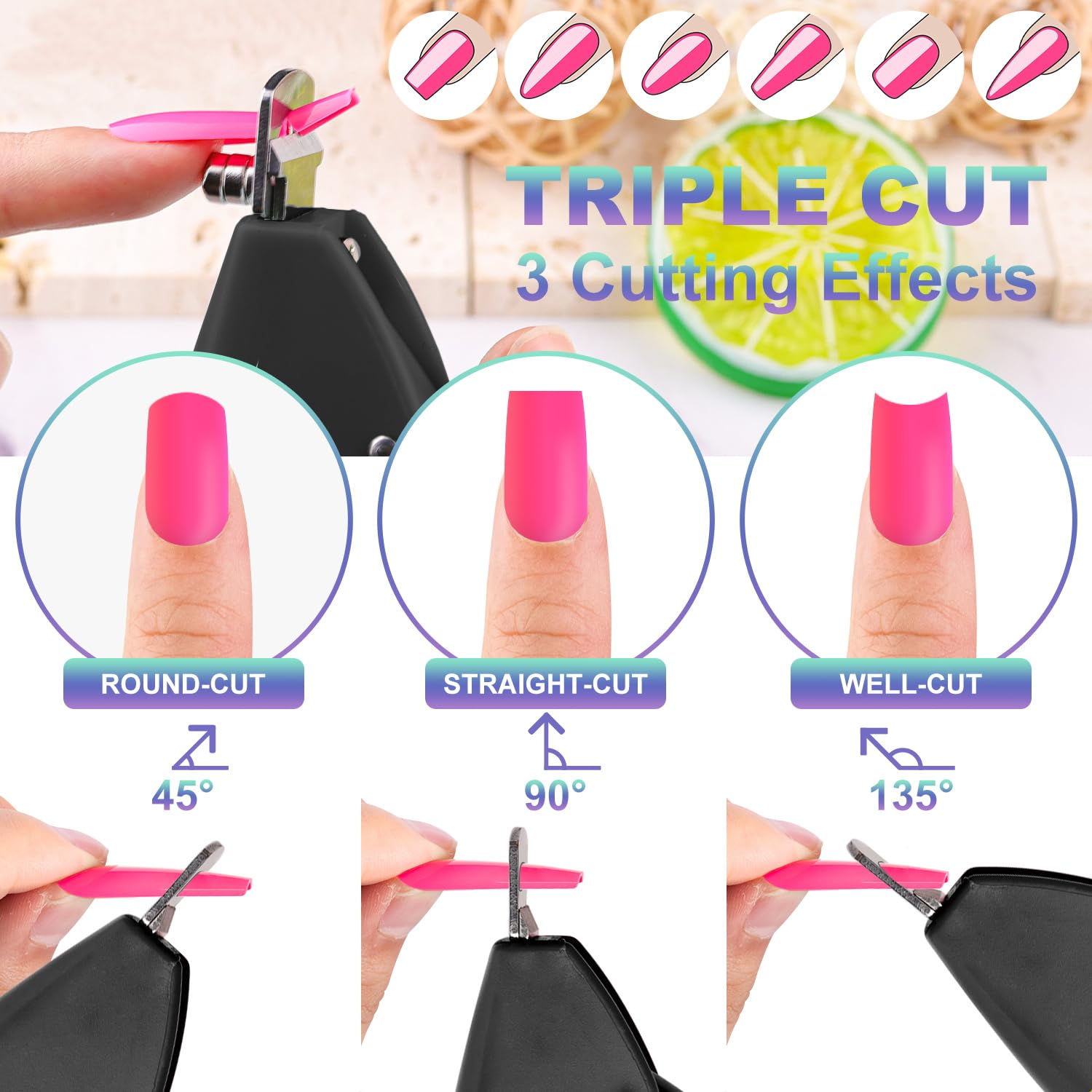 - Useful Tool For Nail Art -- This nail clipper features 3 adjustable angles for a flawless manicure and nail art. Hold it at 45° for round nails, 90° for square nails, and 135° for round nails. You can also trim your favorite nail shape according to your preferences, such as square、squoval、almond、ballerina、coffin、stiletto