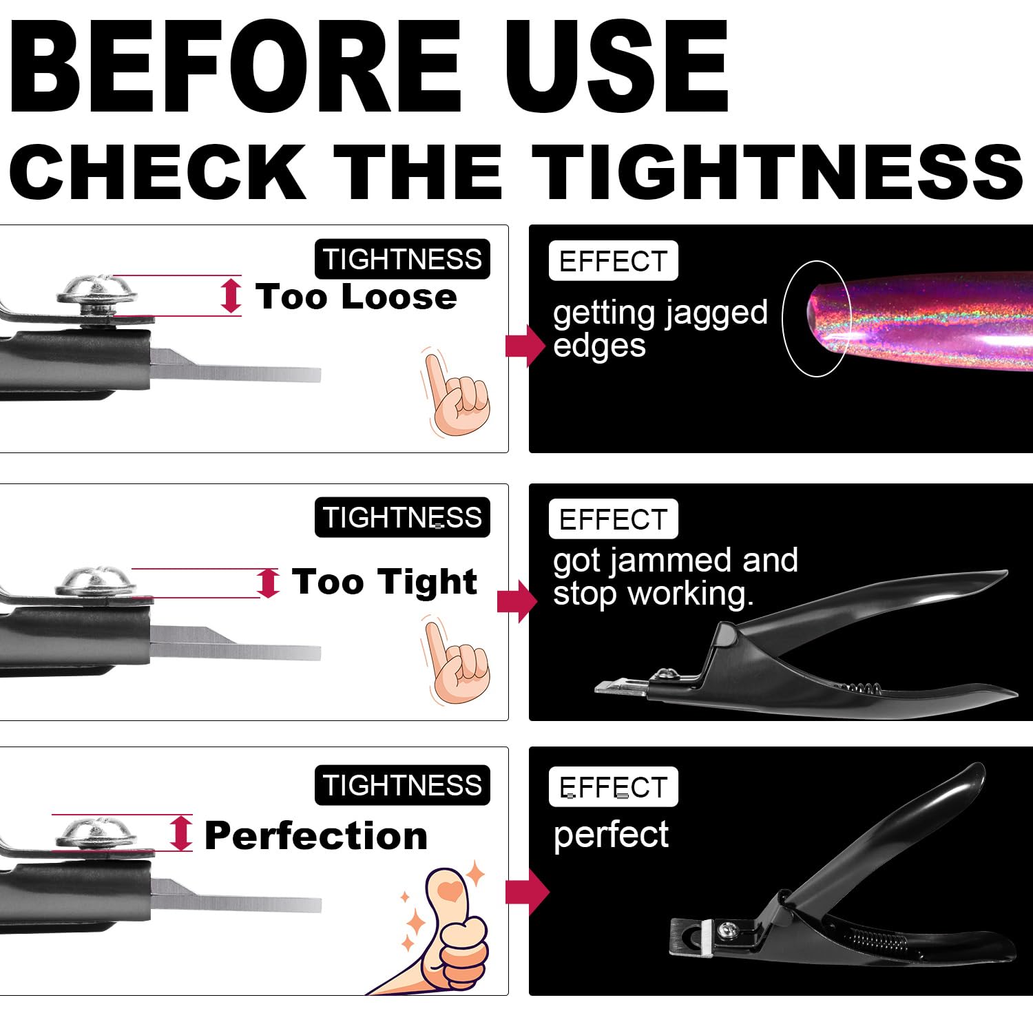 - ✂️Sharp Blade and Smooth Nails -- Cut acrylic nails quickly and smoothly with this sharp-bladed and strong-springed clipper. The comfortable handle and safe edge design make cutting nail tips a breeze. Please check the tightness of the screw before use, perfect tightness will make sure you clipper work well.