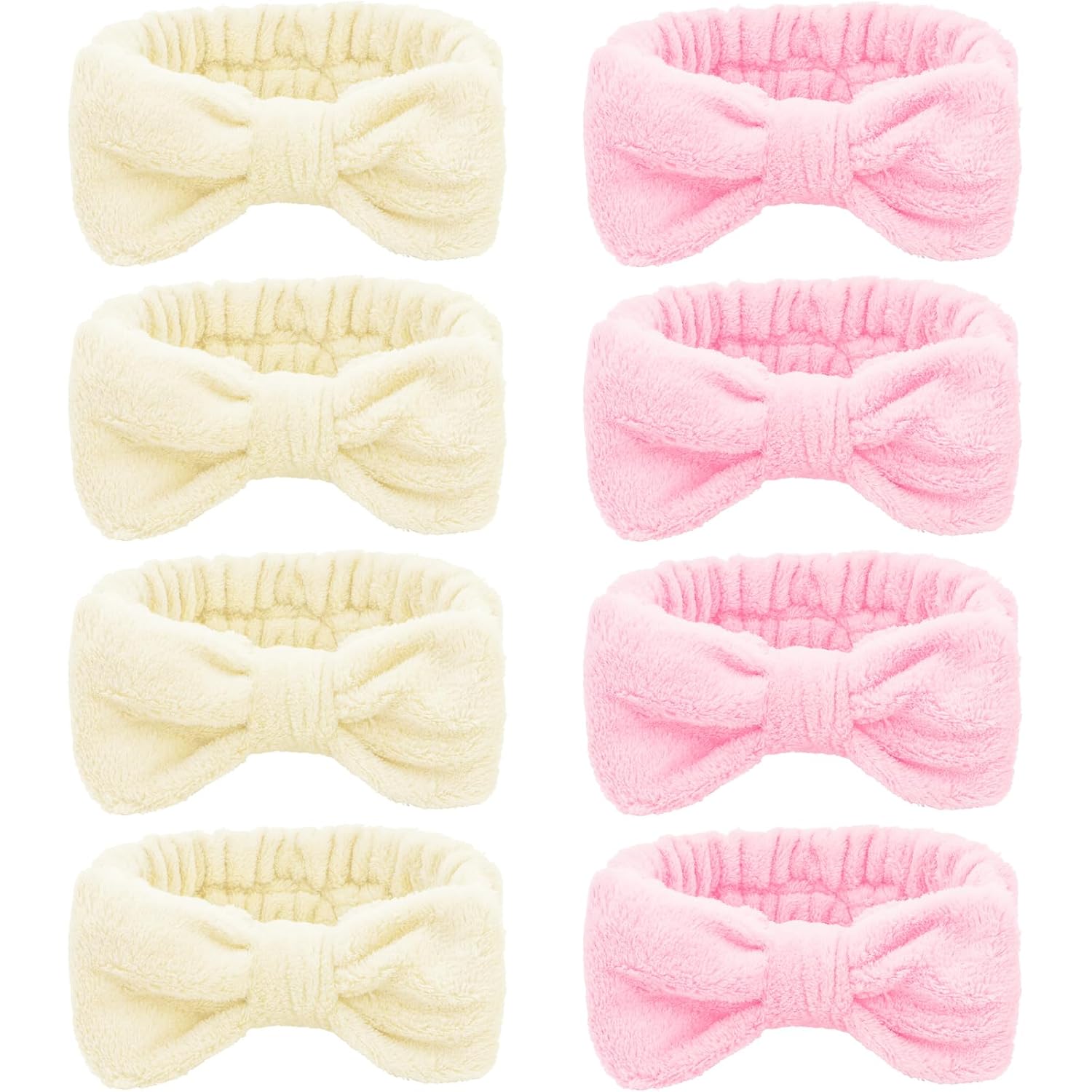 - Durable: These skin care headbands bulk including 4 pcs pink spa head bands and 4 pcs beige spa headbands. Cute bow design, you can sharing these headband with your sisters, family and friends. pink spa headbands are the necessary hair accessories for spa party & bachelorette party.