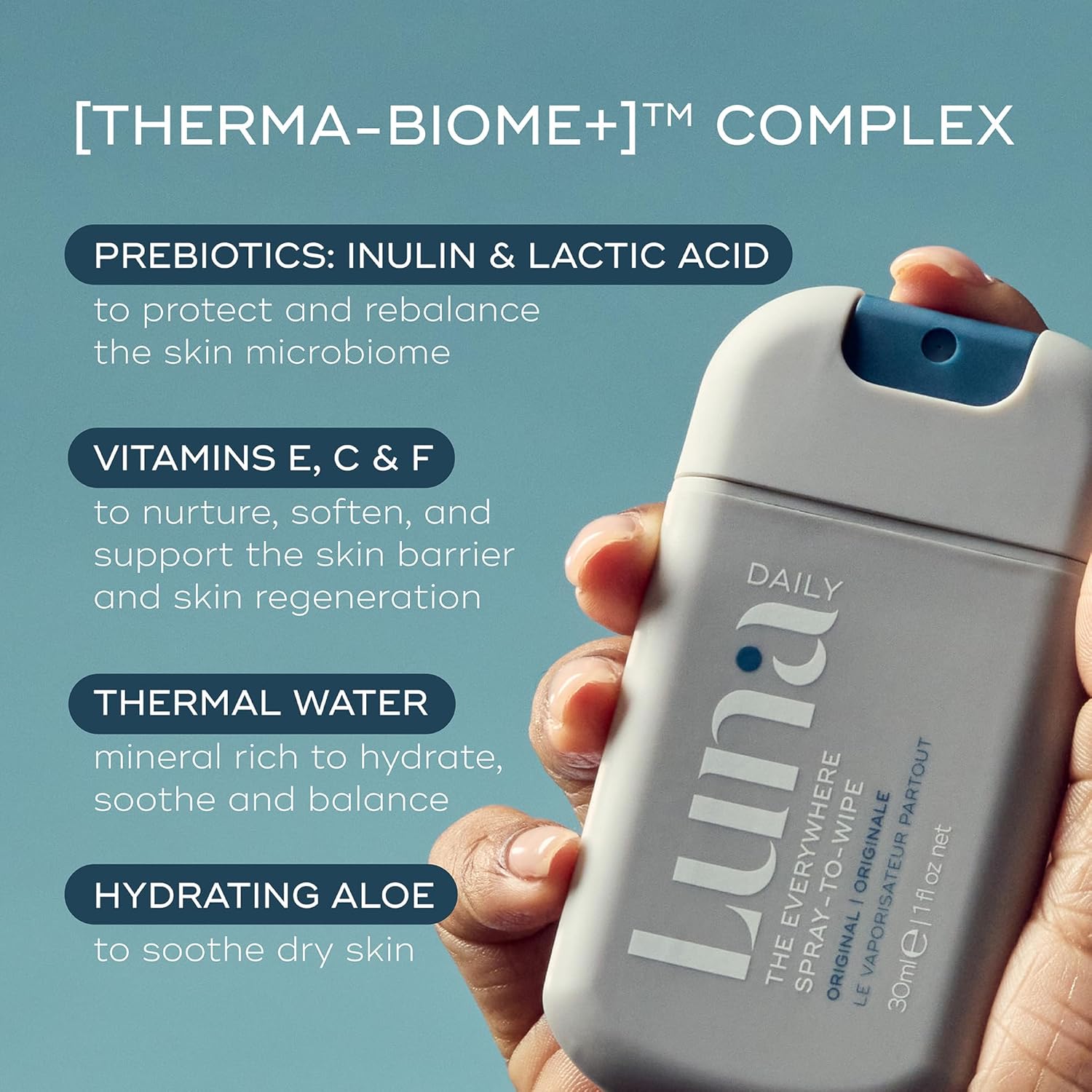Luna Daily Mini Body Cleansing Spray | Instant Cleansing & Hydration for Feminine & Body Care | pH-Balanced & Moisturizing | Fresh Jasmine & Ylang Ylang Scent | Odor Control & Pregnancy-Safe, 30ml