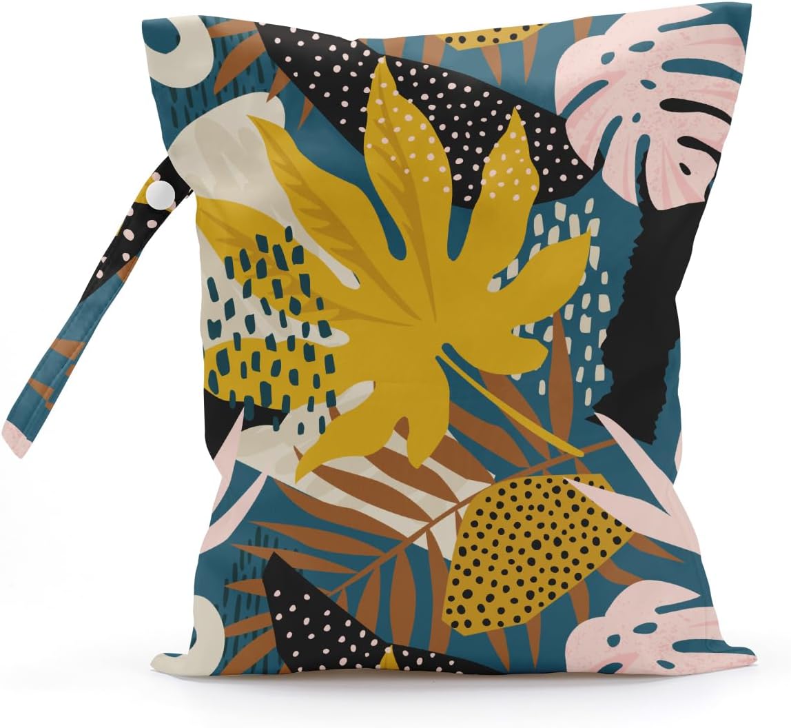 Wet Bag, Wet Dry Bag, Wet Bag for Swimsuit, Travel, Beach, Pool, Diapers, Dirty Yoga Gym Clothes, Makeup Bag, Waterproof Tropical Palm Leaves Decor Jungle Palm Leaf Favors