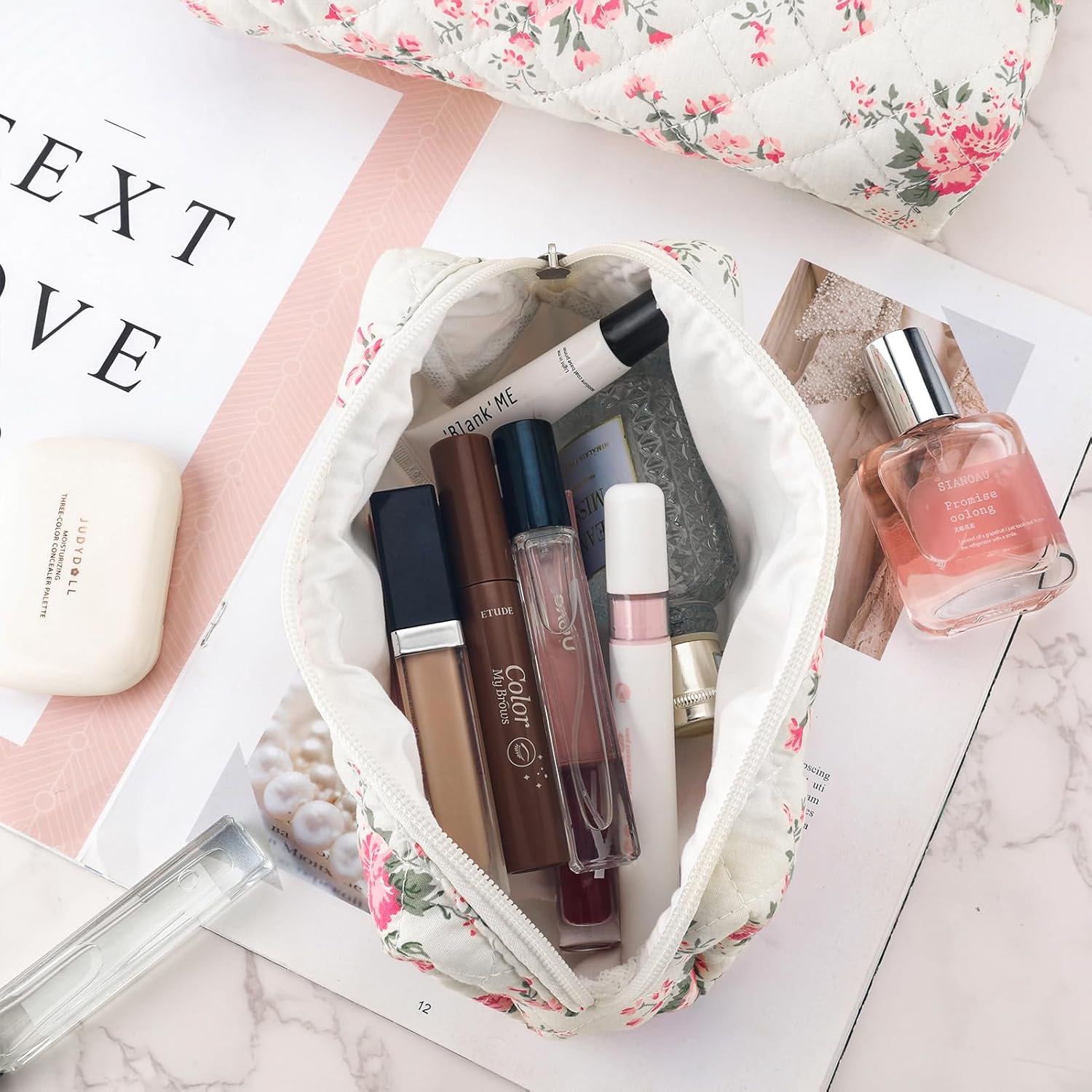 - TRAVEL MAKEUP BAG SET COQUETTE FOR WOMEN:You will get a large makeup bag and a small cosmetic bag (makeup brush bag).These floral makeup pouch is lovely and fashionable, the texture is lightweight and soft. These floral makeup pouch is cute and fashionable, lightweight and soft, easy to carry