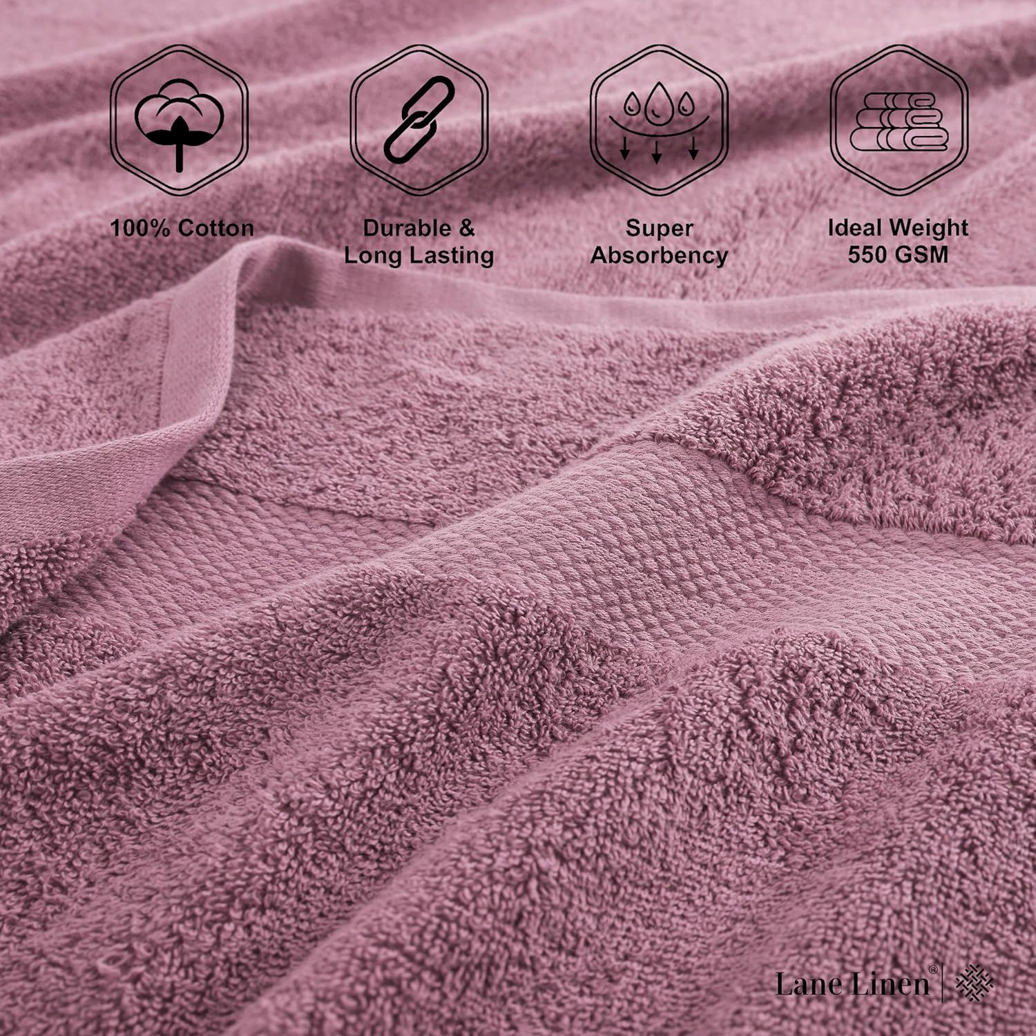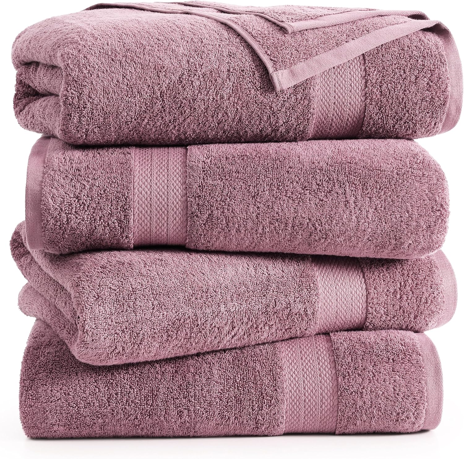 LANE LINEN 100% Cotton Large Bath Towels Set of 4 (28"x54") - Ring Spun Mercerized Cotton Bathroom Towel 4 Pack - Quick Dry, Soft & Absorbent Large Towels Set - Oeko Tex Certified - Wishful Mauve