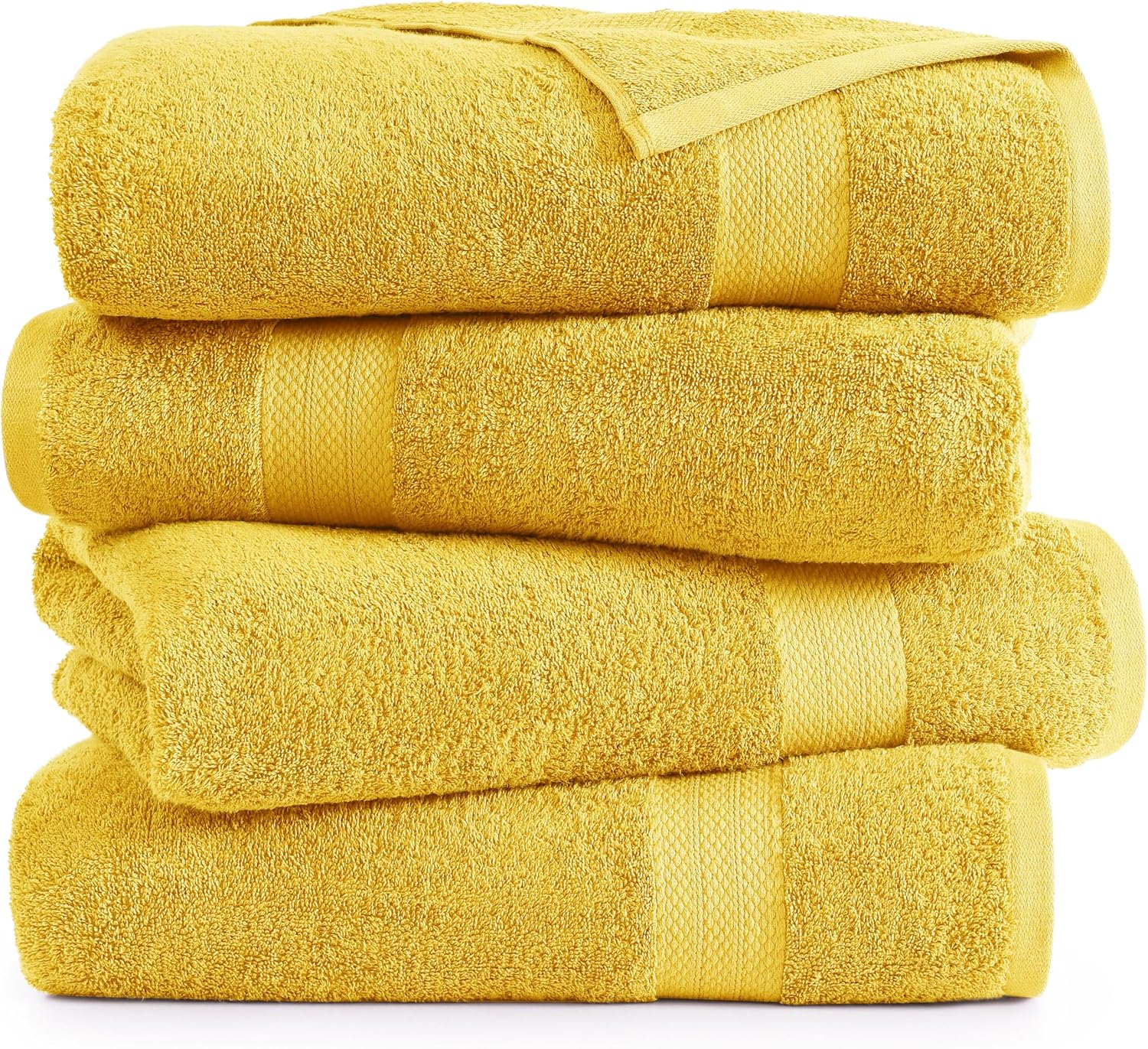 Lane Linen 100% Cotton Bath Towels Pack of 4 (28"x54") - Ring Spun Mercerized Cotton Bathroom Towel Set - Quick Drying, Extra Soft & Absorbent Yellow Bath Towels - Suitable for All Skin Types - Mimosa
