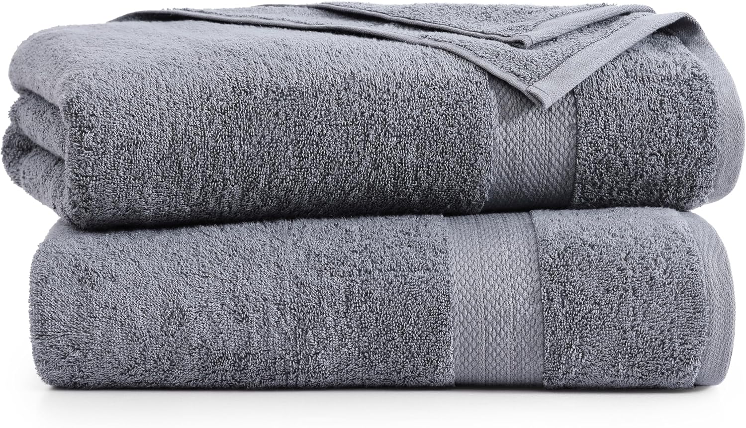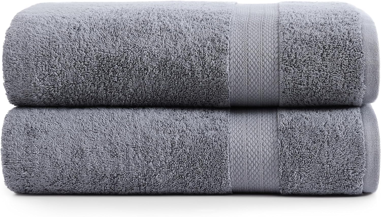 LANE LINEN 100% Cotton 2 Pack Bath Sheets (35"x66") - Ring Spun, Extra Large Cotton Bath Towels Set - Quick Dry, Soft & Absorbent Oversized Towel Set - Remains Soft After Multiple Washes - Cool Grey