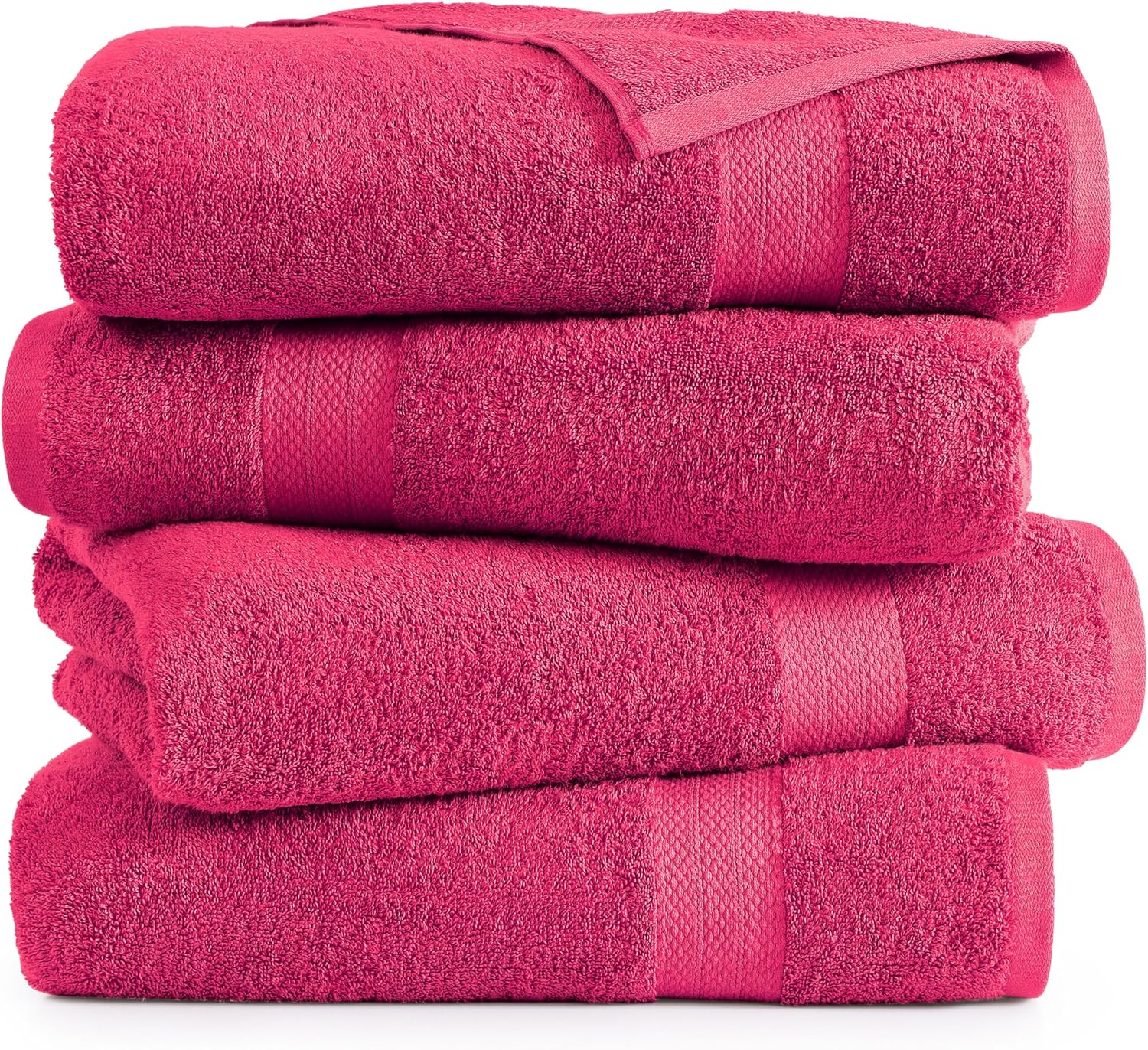 LANE LINEN 100% Cotton Large Bath Towels Set of 4 (28"x54") - Ring Spun Mercerized Cotton Bathroom Towel 4 Pack - Quick Dry, Soft & Absorbent Large Towels Set - Dorm Essentials for Girls - Fuchsia