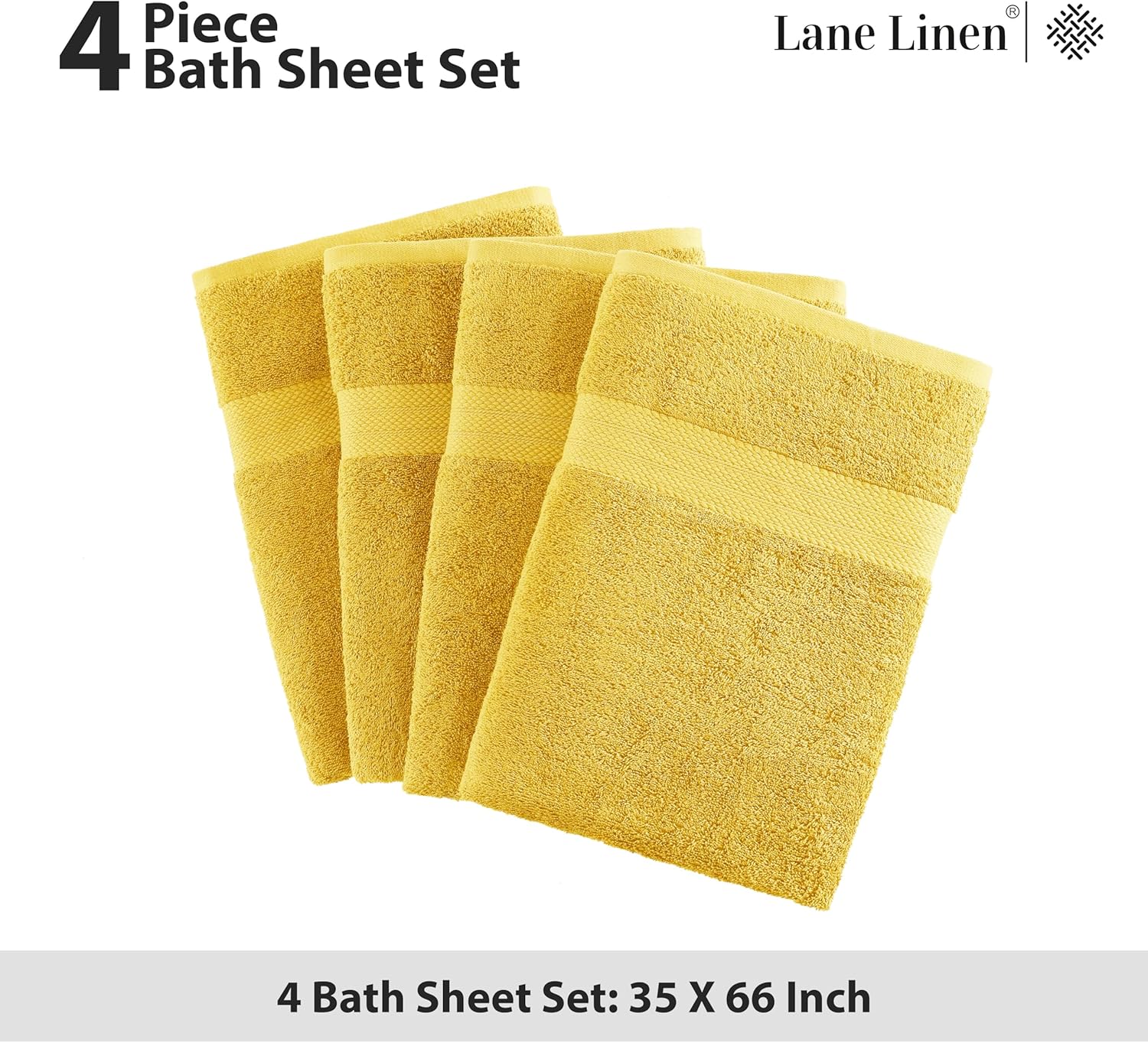 LANE LINEN 100% Cotton Bath Sheets Set of 4 (35"x66") - Ring Spun Cotton Extra Large Bath Towels Set - Quick Dry, Soft & Absorbent Oversized Towel Sets - Holds Well After Multiple Washes - Mimosa