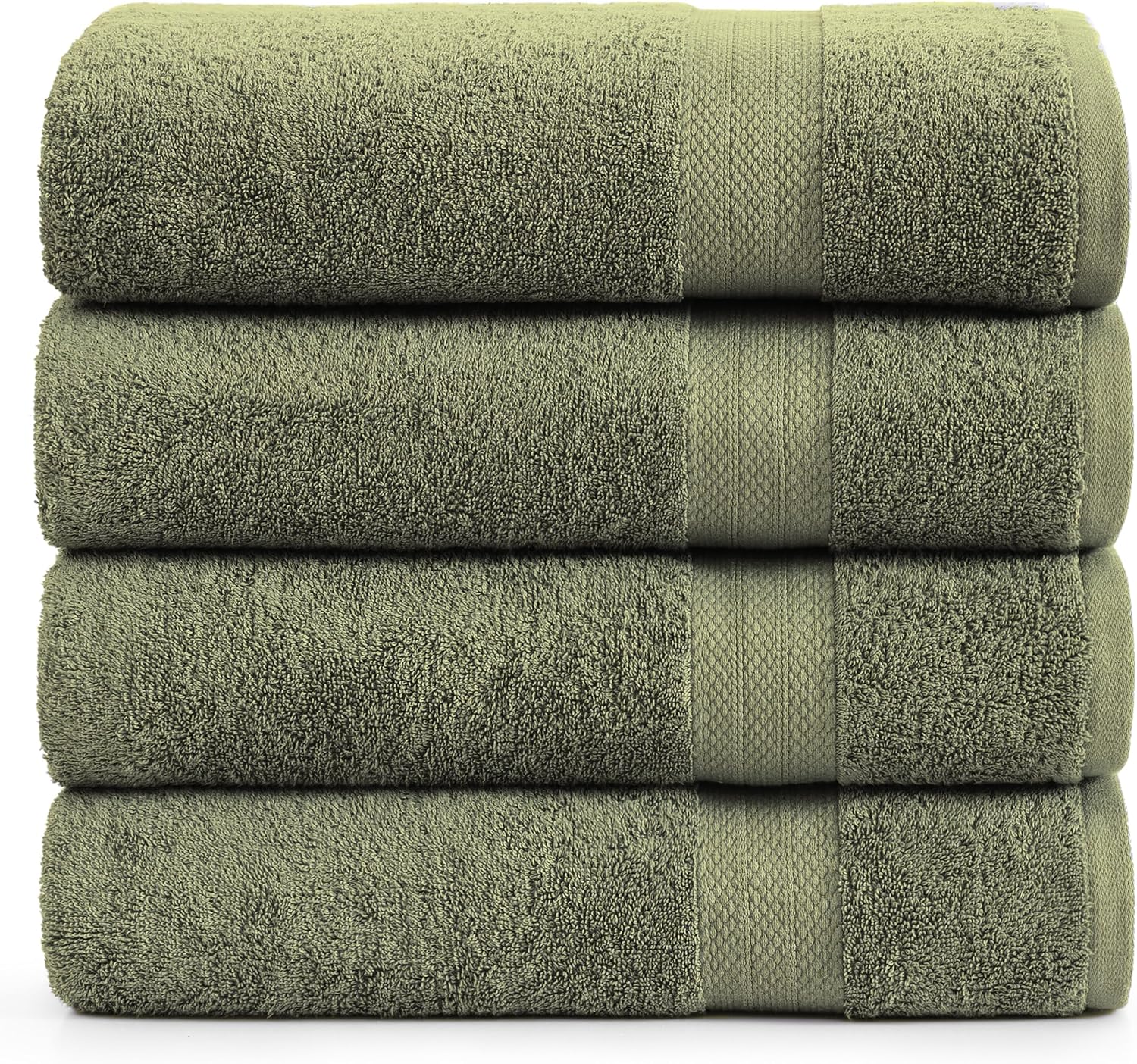 Lane Linen 100% Cotton 4 Pack Bath Towels (28"x54") - Ring Spun Mercerized Cotton Bathroom Towels Set - Quick Dry, Highly Soft & Absorbent Large Bath Towels - Tumble Dry Regains Fluffiness - Oil Green