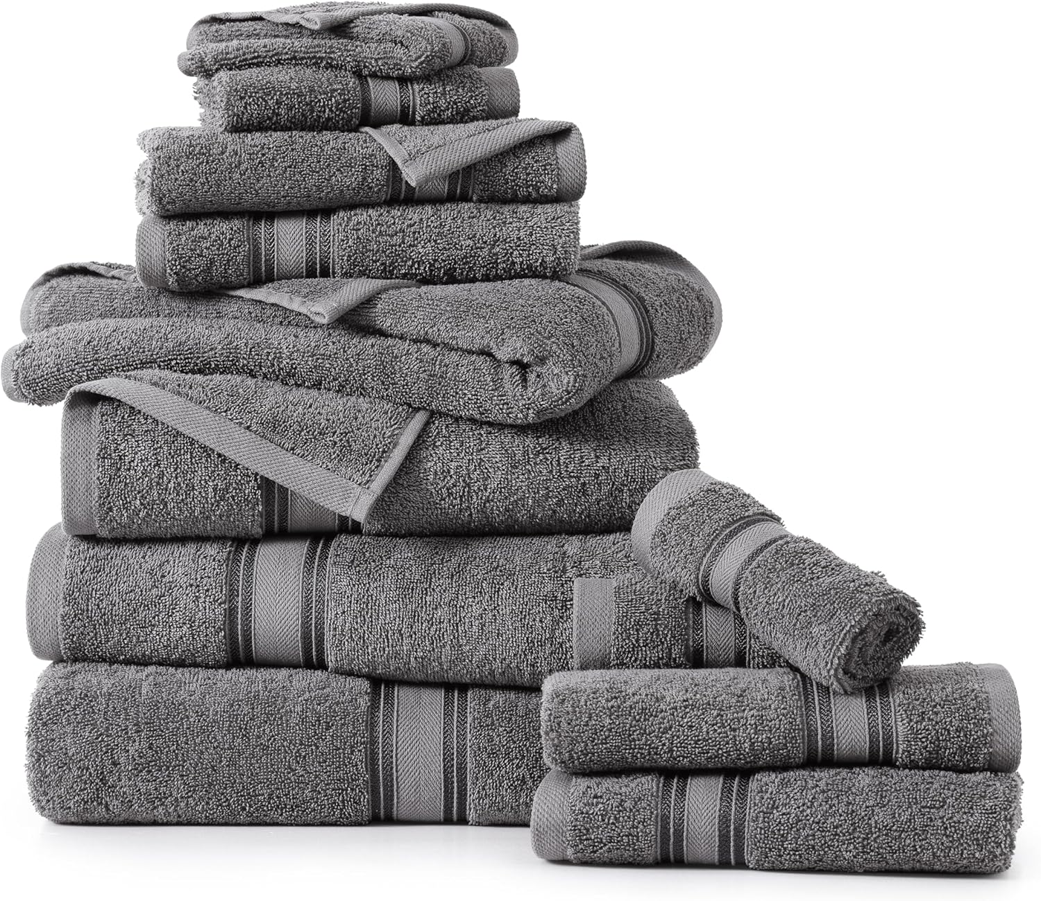 LANE LINEN Luxury Bath Towels Set - 12 Piece, 100% Cotton, Zero Twist, Super Soft & Absorbent, Includes 4 Bath Towels, 4 Hand Towels, 4 Washcloths - Cool Grey
