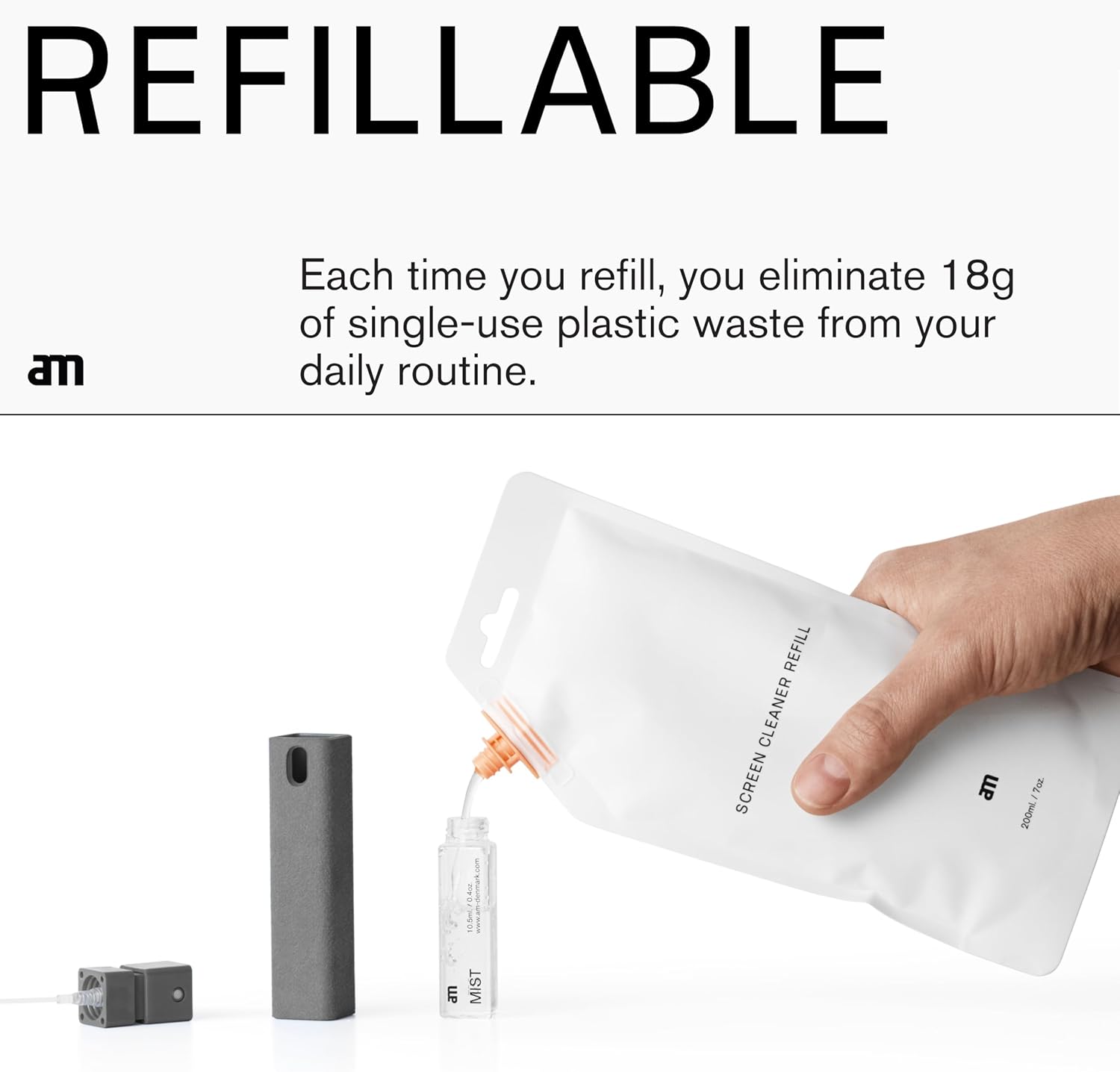 - 🌱 REUSABLE & ECO-FRIENDLY – Skip the waste. This mist spray cleaner is refillable and reusable, supporting sustainable screen care without compromise.