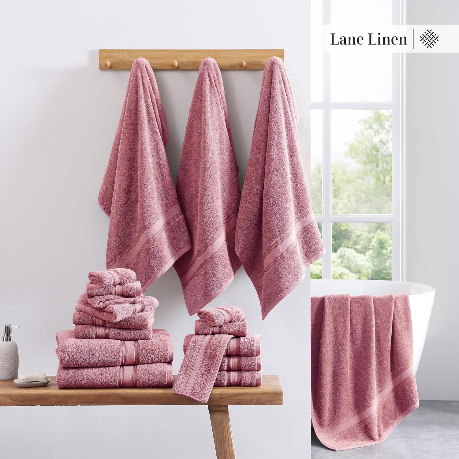 LANE LINEN Luxury Bath Towels Set - 12 Piece Set, 100% Cotton Bathroom Towels, Zero Twist, Quick Dry Shower Towel, Absorbent Bath Towel, 4 Bath Towels, 4 Hand Towels, 4 Wash Cloths - Wishful Mauve