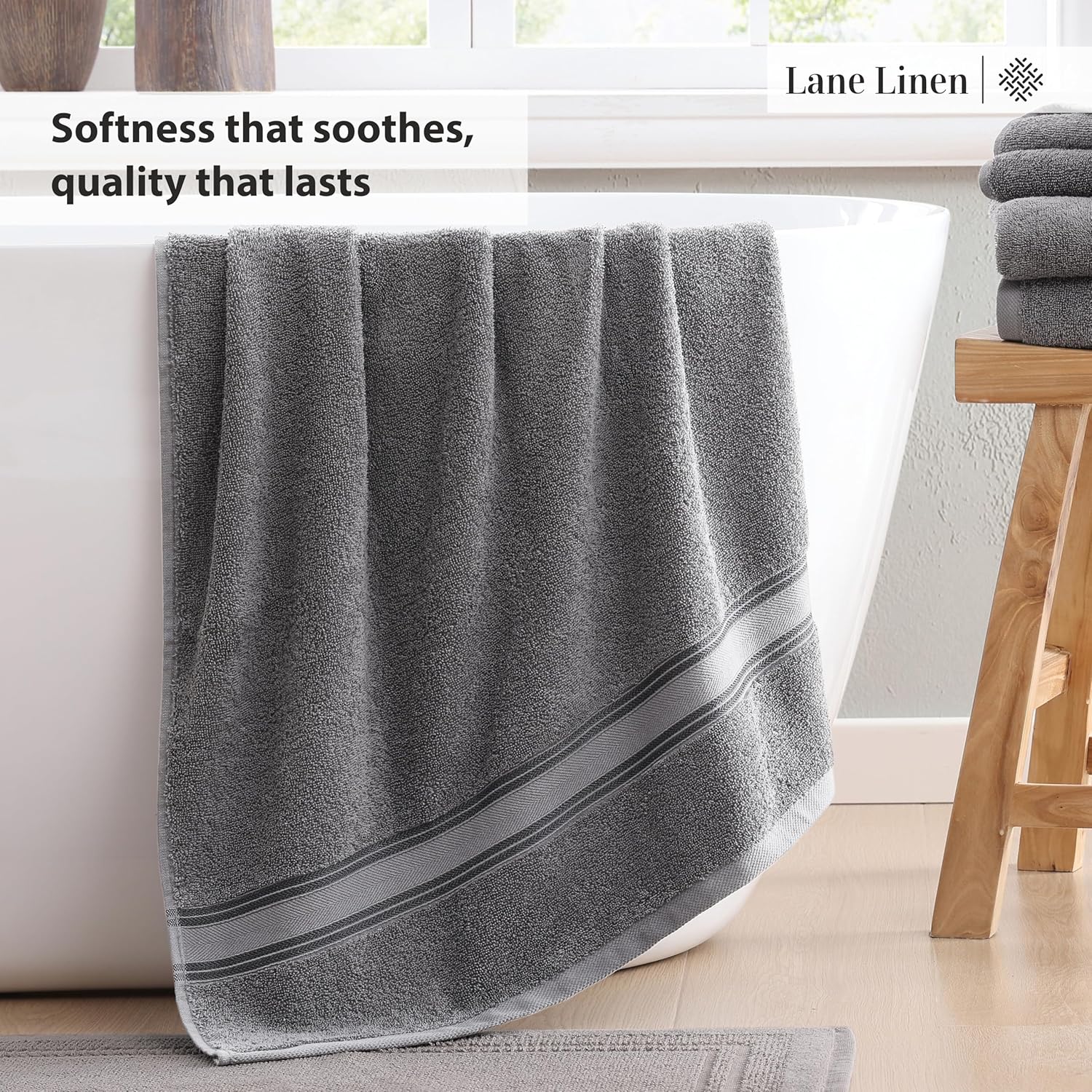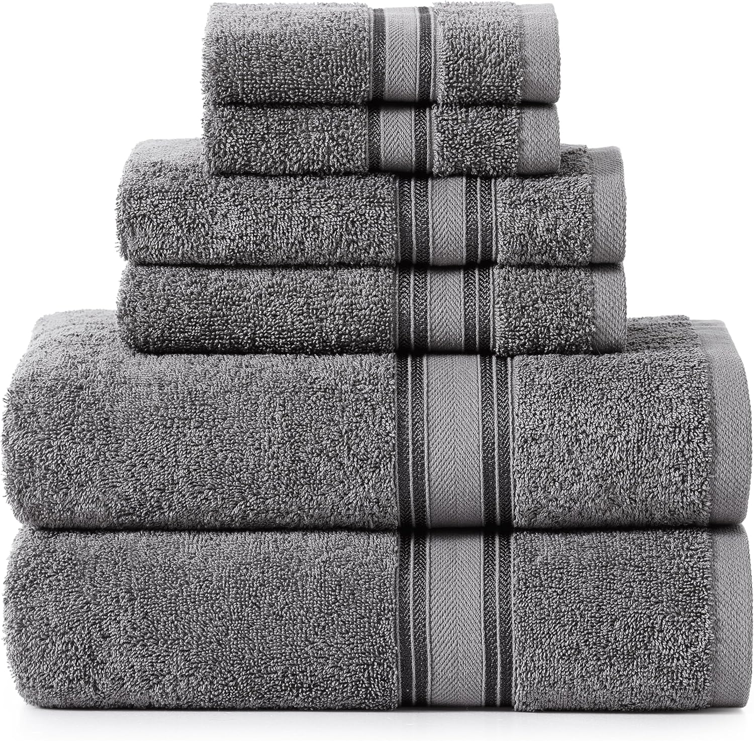 LANE LINEN Luxury Bath Towels Set - 6 Piece, 100% Cotton, Quick Dry, Soft & Absorbent, Zero Twist - 2 Bath Towels, 2 Hand Towels, 2 Washcloths - Cool Grey