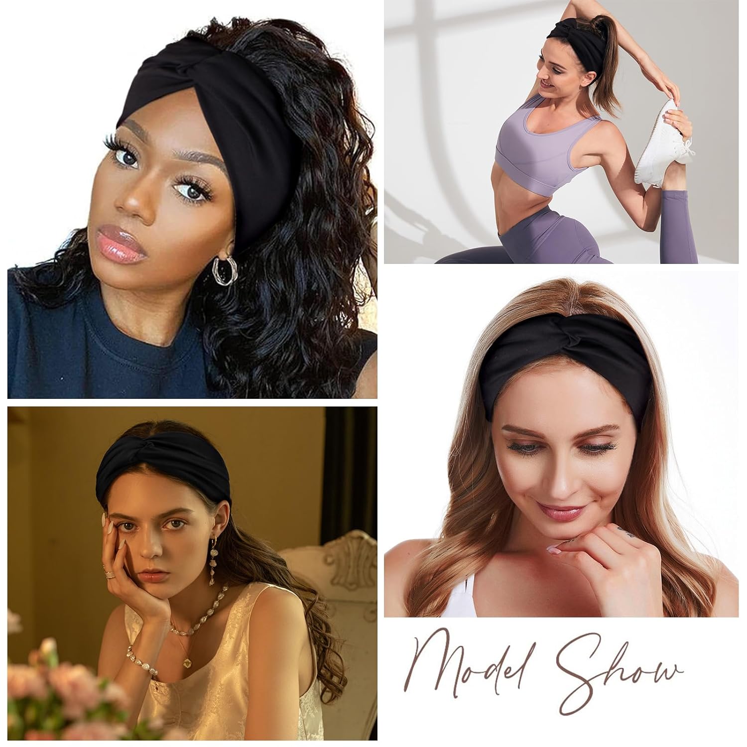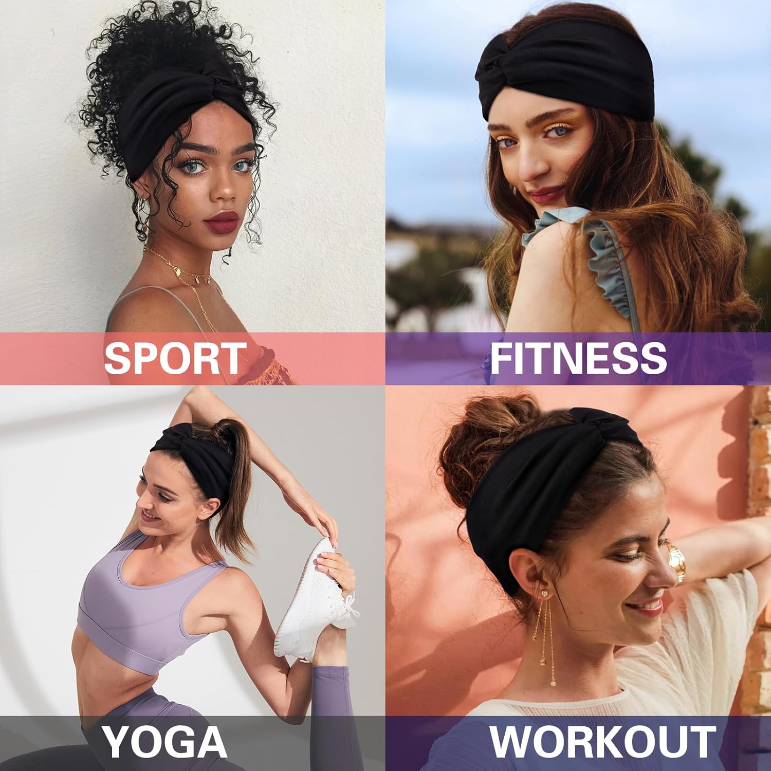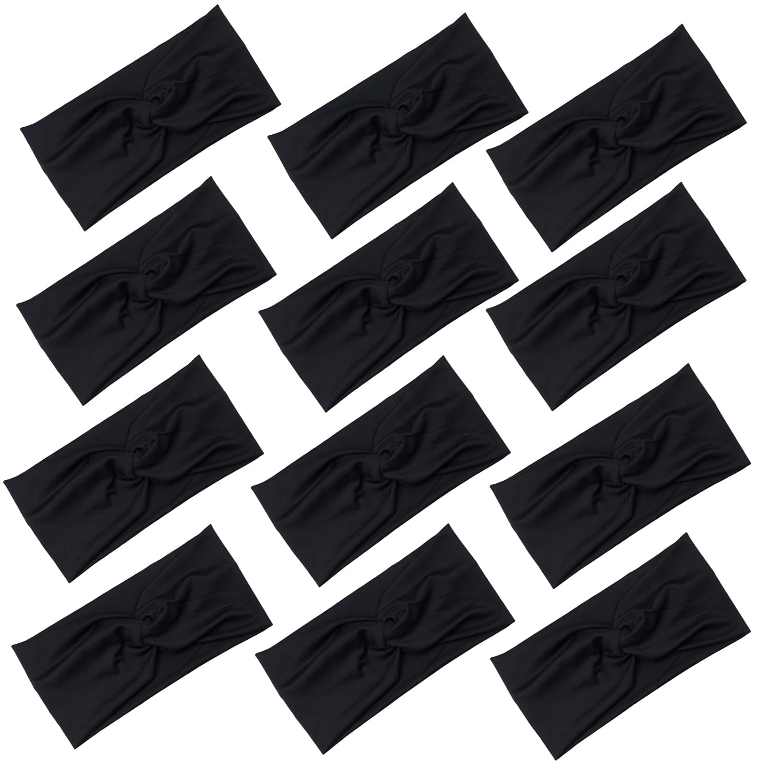 Yeshan Black Headbands for Women No slip Wide Stretchy Headbands Twist Knotted Headbands Yoga Workout Sport Hair bands,Pack of 12
