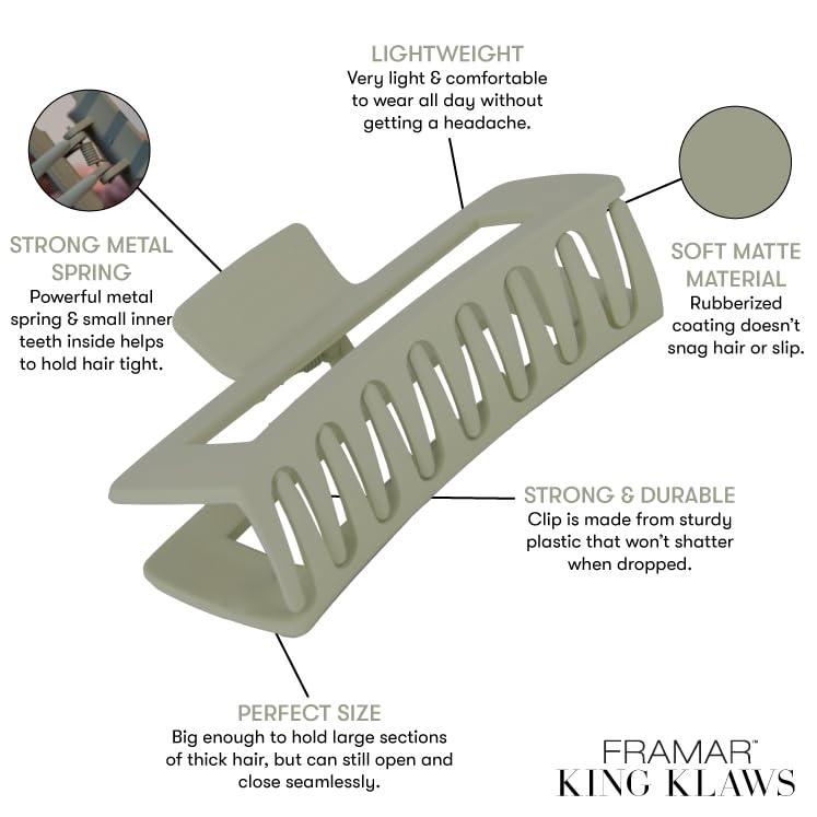 - Non Slip, High Quality - Green Claw Clip is made from sturdy plastic that won’t shatter when dropped. Powerful metal spring & small inner teeth inside helps to hold hair tight. Your new jumbo claw clip is here!