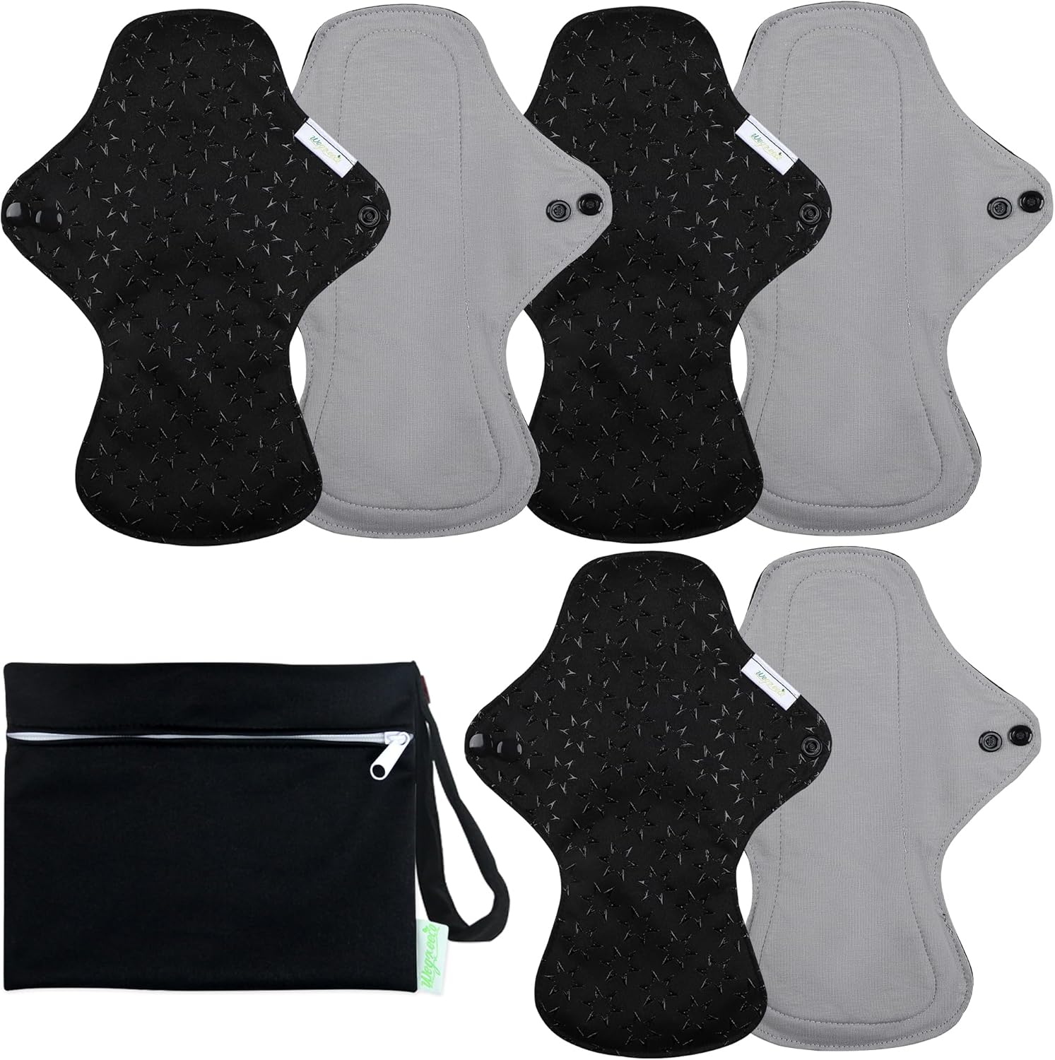 wegreeco 6 Pcs Reusable Menstrual Pads, Ultra Absorbent Cloth Pads for Heavy Flow, Sanitary for Teens, Women, Nonslip, Grey Inner, Black Outer, Small