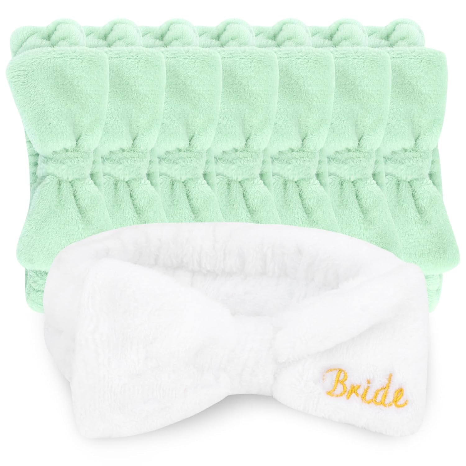 - 💗 The perfect bachelorette themed party favors: 1 white bridal spa headband +7 green bridesmaid spa headbands.