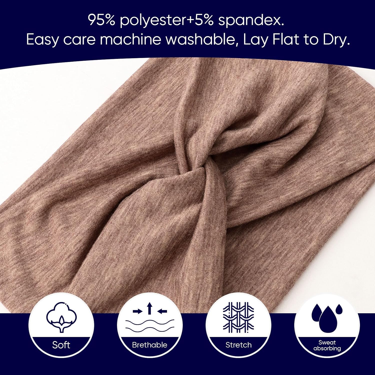 - Great Material - AQOKKA wide headbands for women are made of high-quality polyester and spandex. The fabric is breathable and soft with excellent sweat absorption to keep your forehead dry without bringing a stuffy feeling, which can keep your forehead dry and cool without bringing a stuffy feeling. These headbands have excellent support, you can wear them all day without pain.