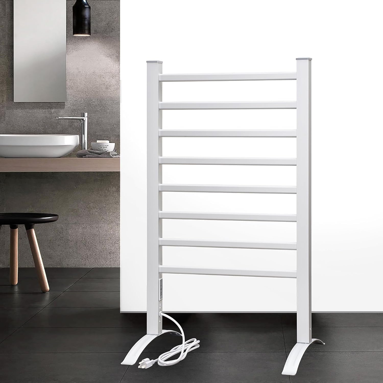 KEG Towel Warmer 8 Bars for Bathroom Freestanding or Wall Mounted Bath Towel Heater Plug-in with Built-in Timer Silver