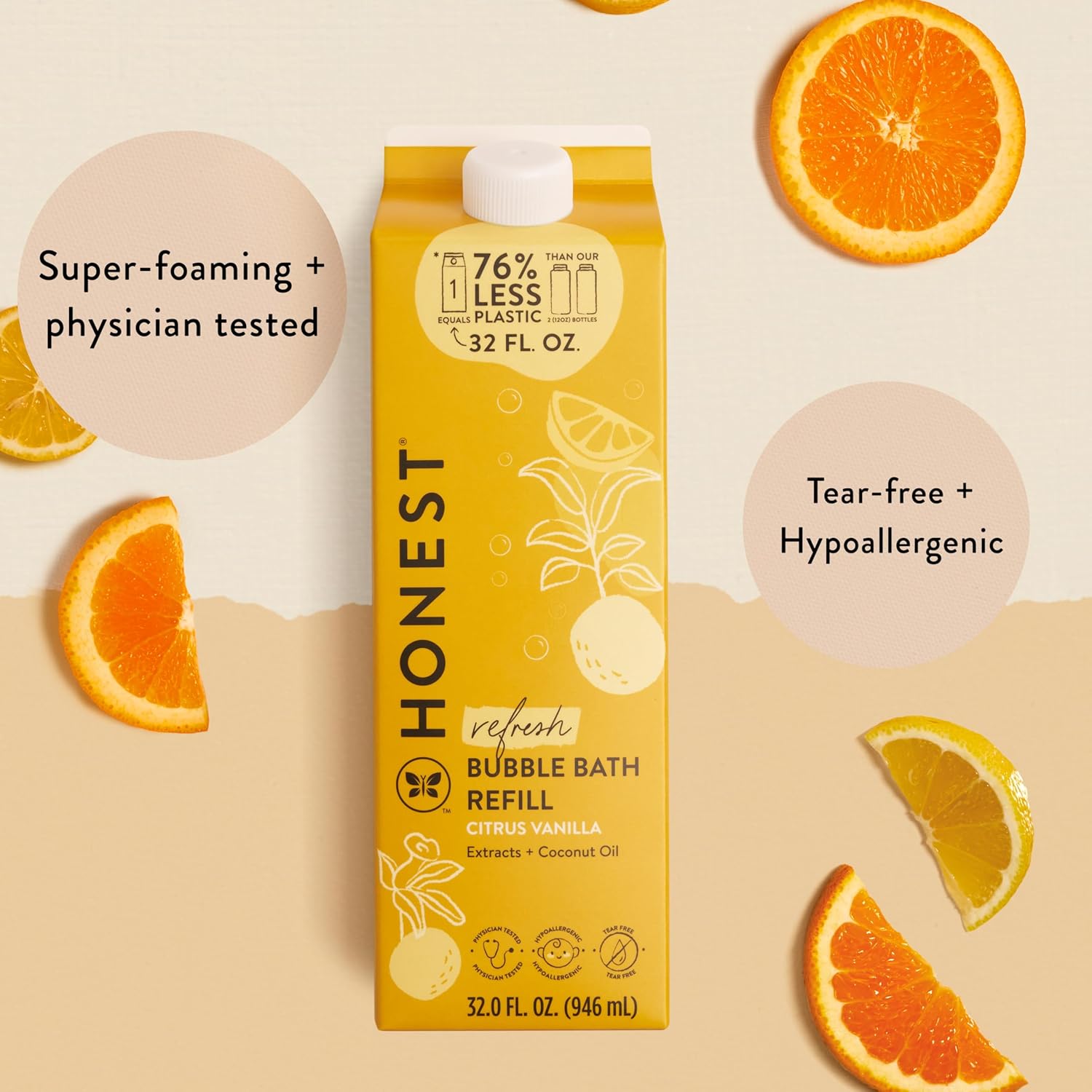 The Honest Company Foaming Bubble Bath Refill Carton | Gentle for Baby | Naturally Derived, Tear-Free, Hypoallergenic | Citrus Vanilla Refresh, 32 fl oz