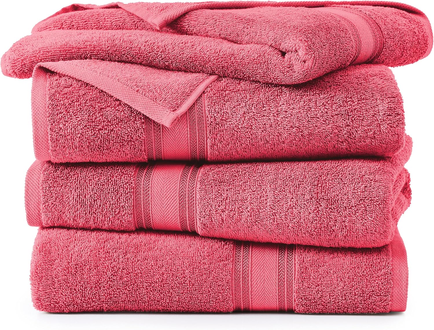 Lane Linen 100% Cotton Large Bath Towels Set of 4 (28"x54") - Zero Twist, Mercerized Cotton Bathroom Towel Sets - Quick Dry, Soft & Absorbent Large Towels Set - Dorm Essentials for Girls - Honeysuckle