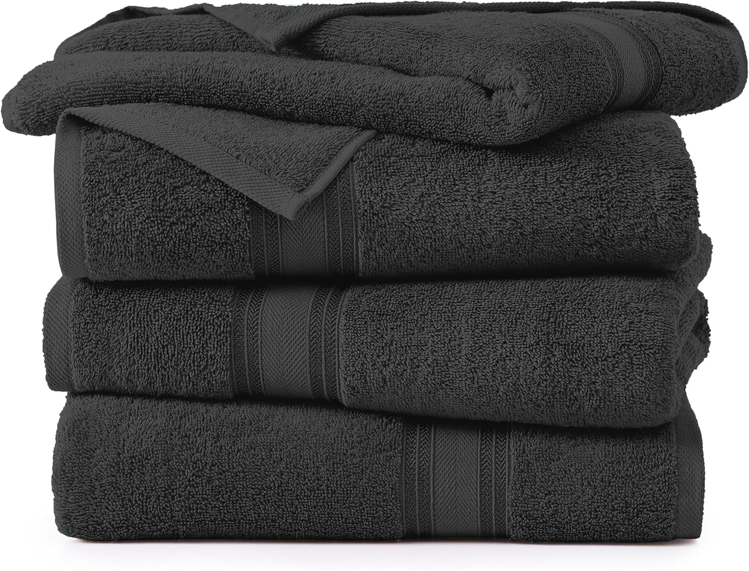 LANE LINEN 100% Cotton Bath Towels 4 Pack (30"x60") - Zero Twist, Mercerized Cotton Large Towel Set for Bathroom - Quick Dry, Soft & Absorbent Large Bath Towel Set - Oeko Tex Certified - Black Towels