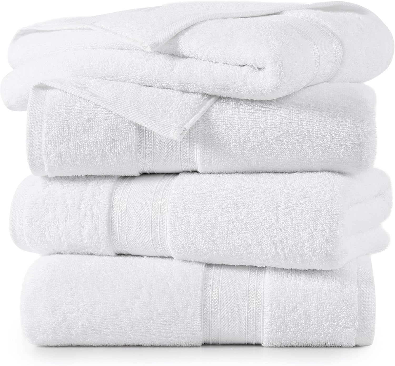 LANE LINEN 100% Cotton 4 Pack Bath Towels (30"x60") - Zero Twist, Cotton - Large Towels for Bathroom - Quick Drying, Highly Soft & Absorbent Shower Towel Set - Hotel & Spa Quality - White Towel Set