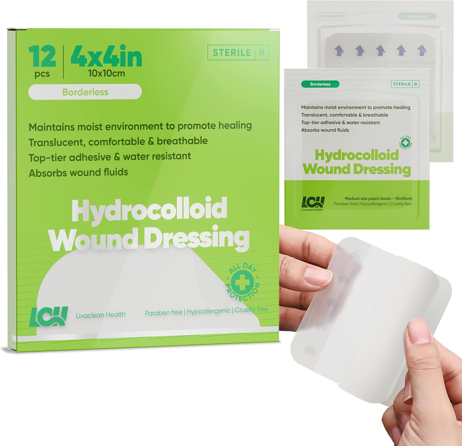 - ✅ MORE BANG, LESS BUCK - We offer 12 count individually packaged large hydrocolloid bandages 4" x 4" (10 x 10cm). Perfect for use on minor burns, minor cuts, scrapes, light-exuding chronic wounds, superficial acute wounds, pressure ulcers, etc.