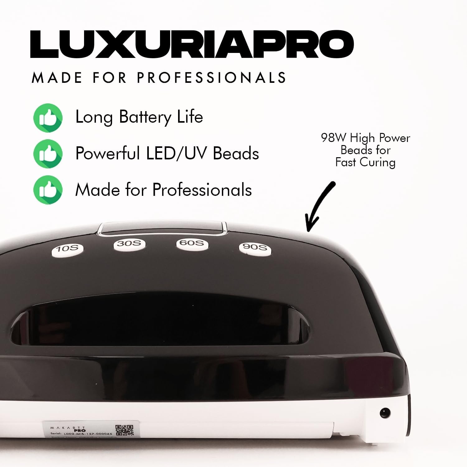 MakarttPro LuxuriaPro 98W Professional UV LED Nail Lamp | 42 Powerful LEDs for Fast and Efficient Curing Gel Nails | Rechargeable 5200mA Lithium Battery | Cordless Nail Dryer (Luxe Black)
