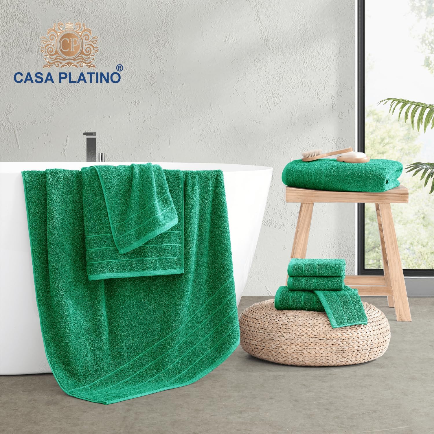 Casa Platino 100% Mercerized Cotton Bathroom Towel Set - 8 Pieces, Hotel Quality - Super Soft & Highly Absorbent - Ring Spun - 2 Large Bath Towels, 4 Washcloths, 2 Hand Towels - Family Pack - Emerald