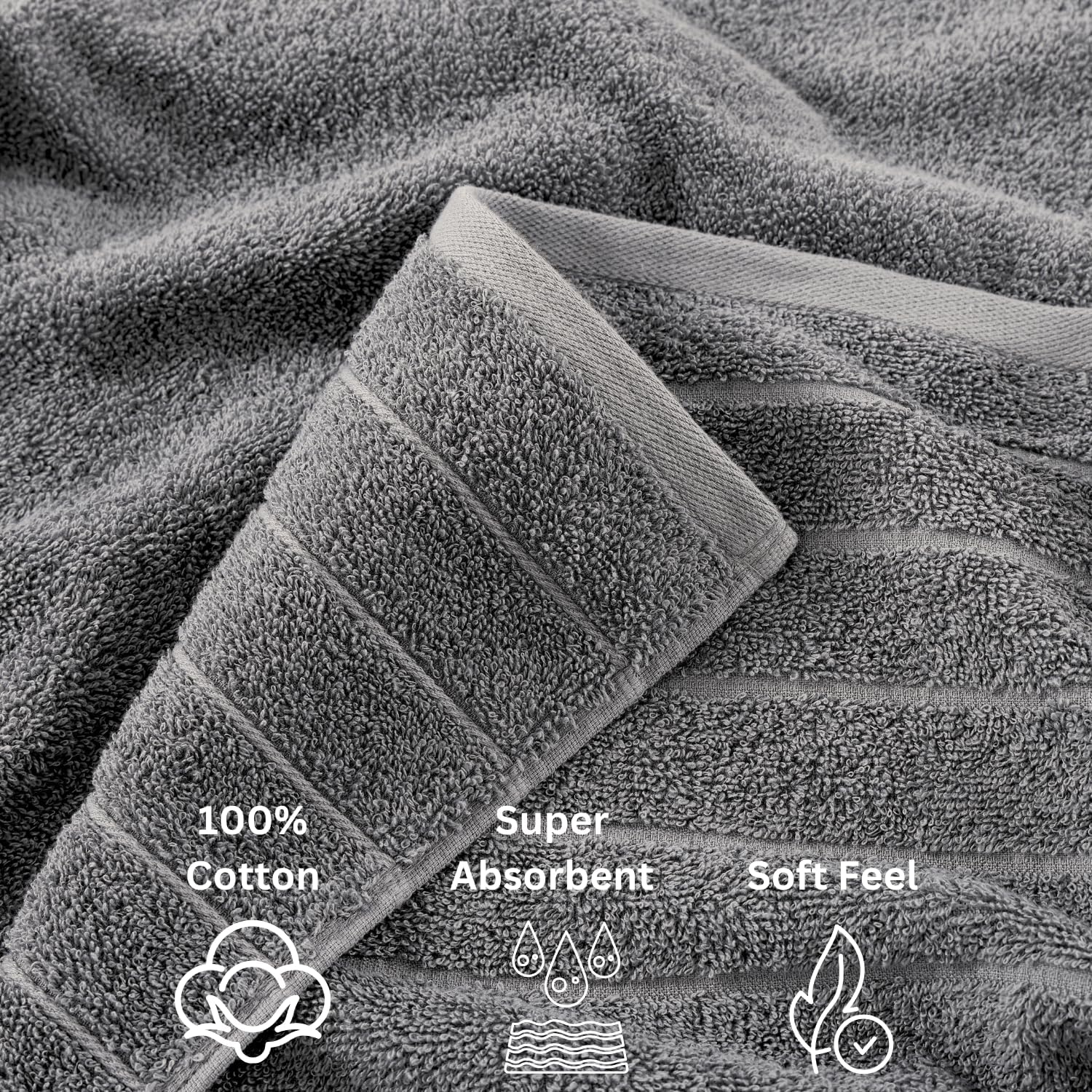 - Luxurious Comfort - Our Large Towel Set is woven with 100% cotton with advanced technology that guarantees the ultimate softness, durability, and quick-drying features. The thick terry of our Cotton Towel makes our High Quality Bath Towels Ultra-Absorbent.