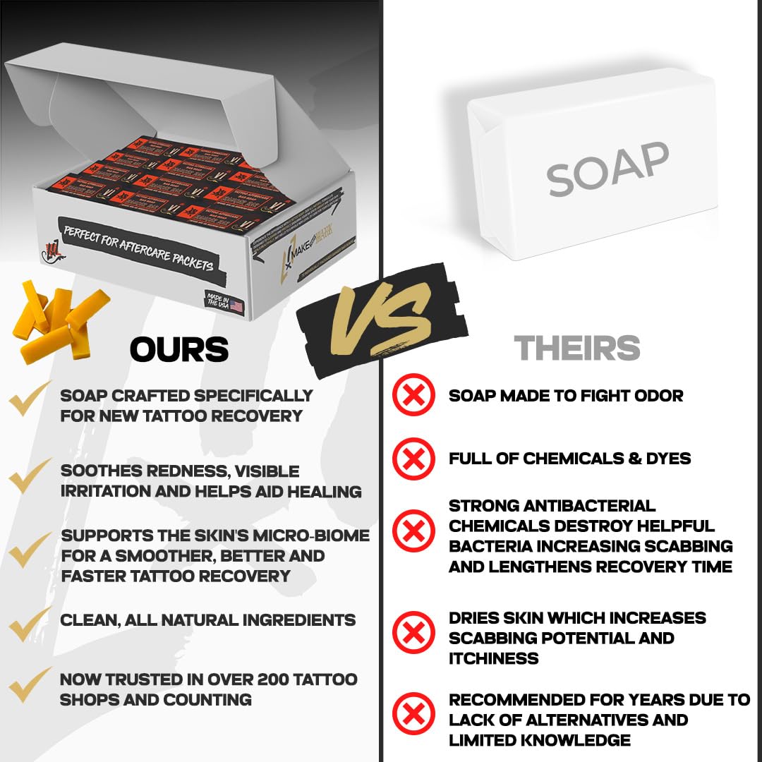 - PROFESSIONAL & CLIENT-READY | Elevate your studio's professionalism. Each 0.4oz bar is individually sealed for impeccable hygiene, making them the perfect addition to client aftercare kits. Ideal for tattoo studios, PMU artists, traveling artists, and convention giveaways that leave a lasting impression.