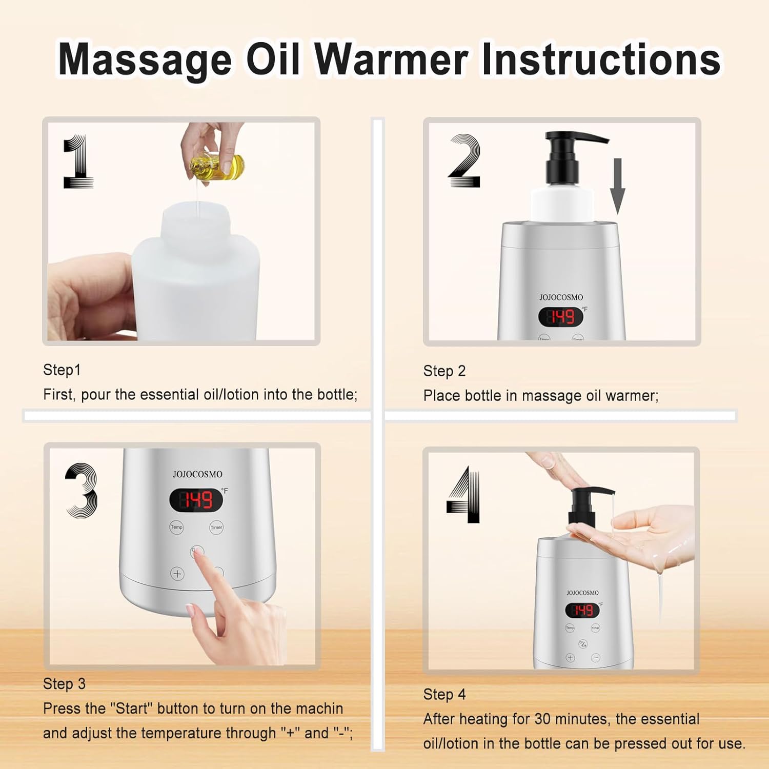 - 【Safe Material & Long Service Life】The lotion warmer is made of safe ABS material, which is high temperature resistant and ensures a long service life. The body lotion warmer includes 2 convenient 250ml plastic bottles, perfect for storing your massage oils, lotions or creams!